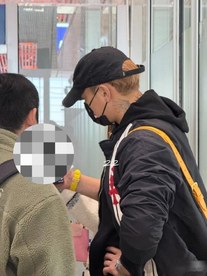 北京机场的安检区域,黄子韬配合检查流程,徐艺洋陪伴在侧,两人全程保持近距离,互动