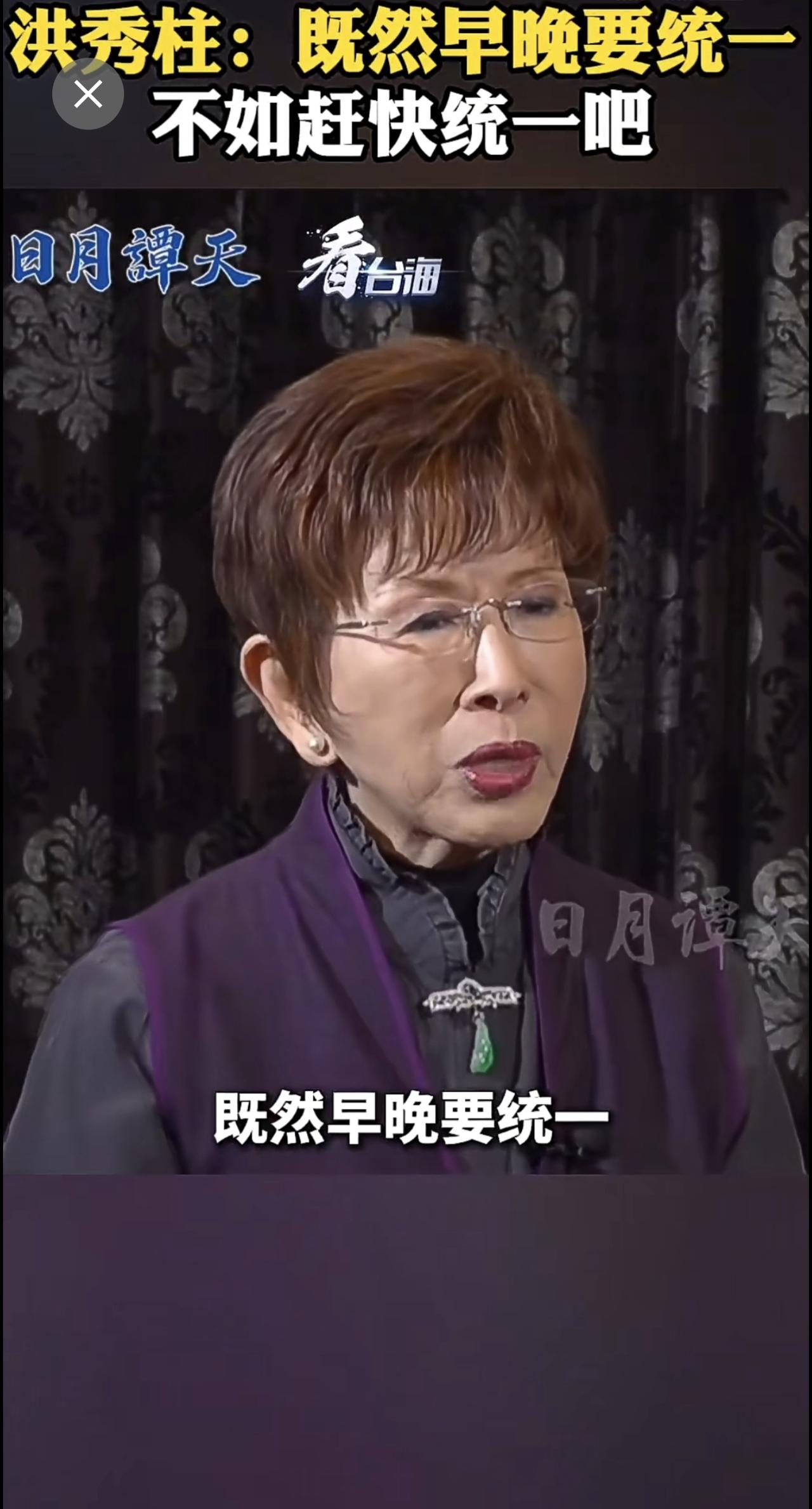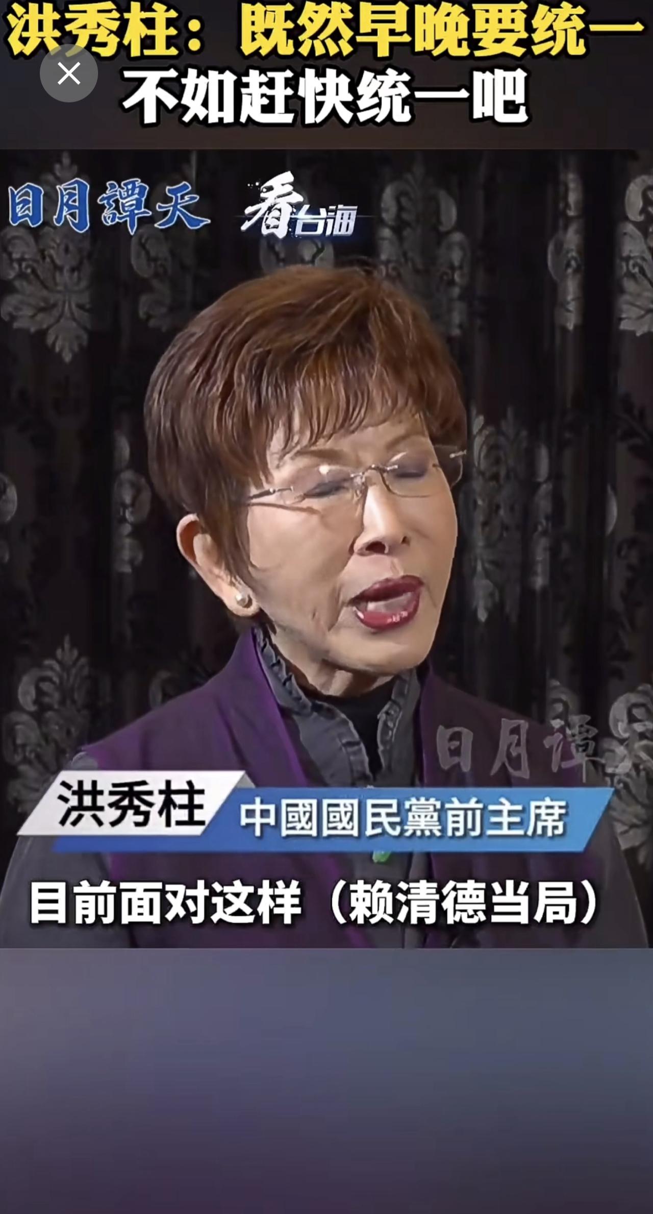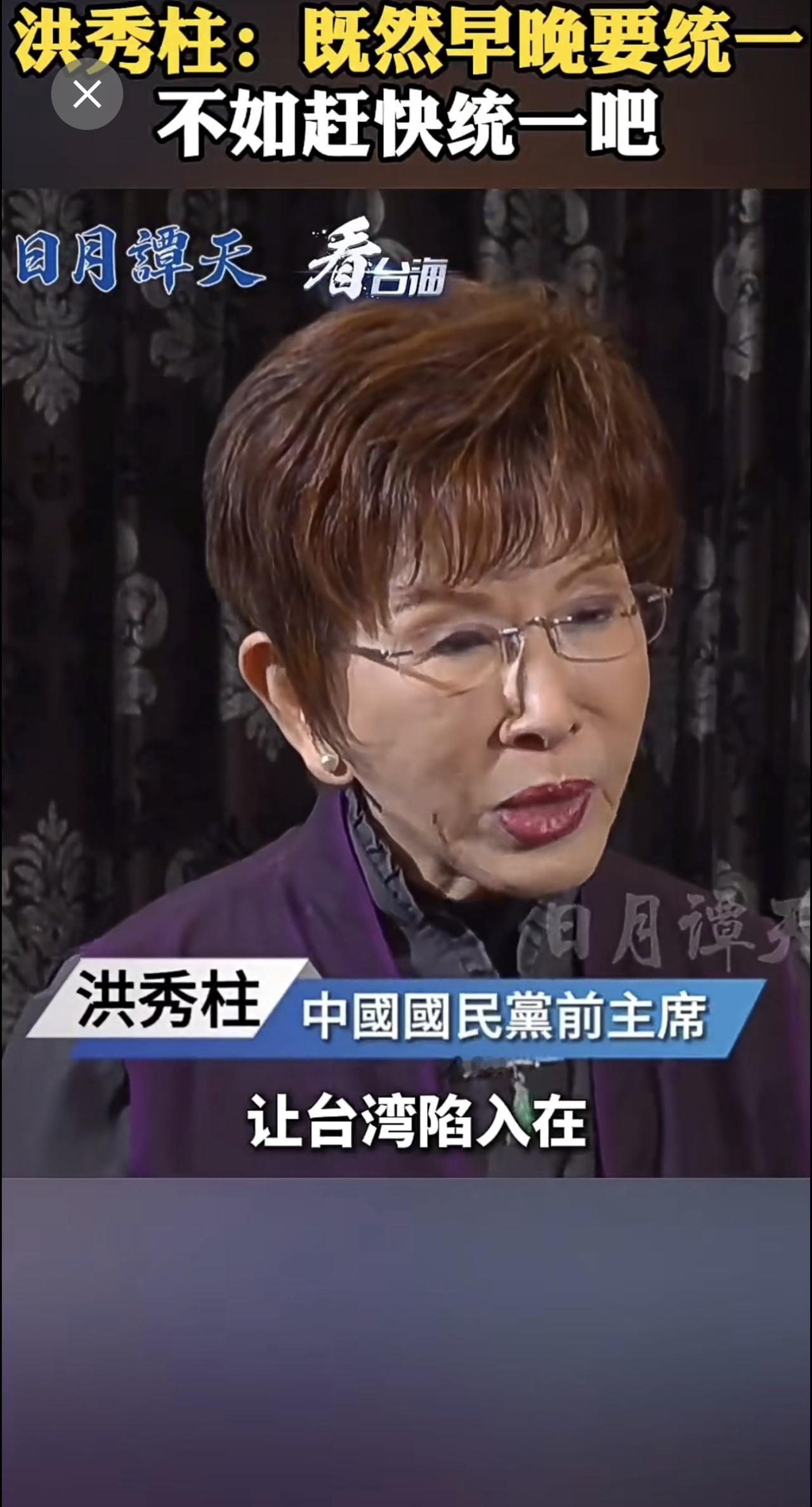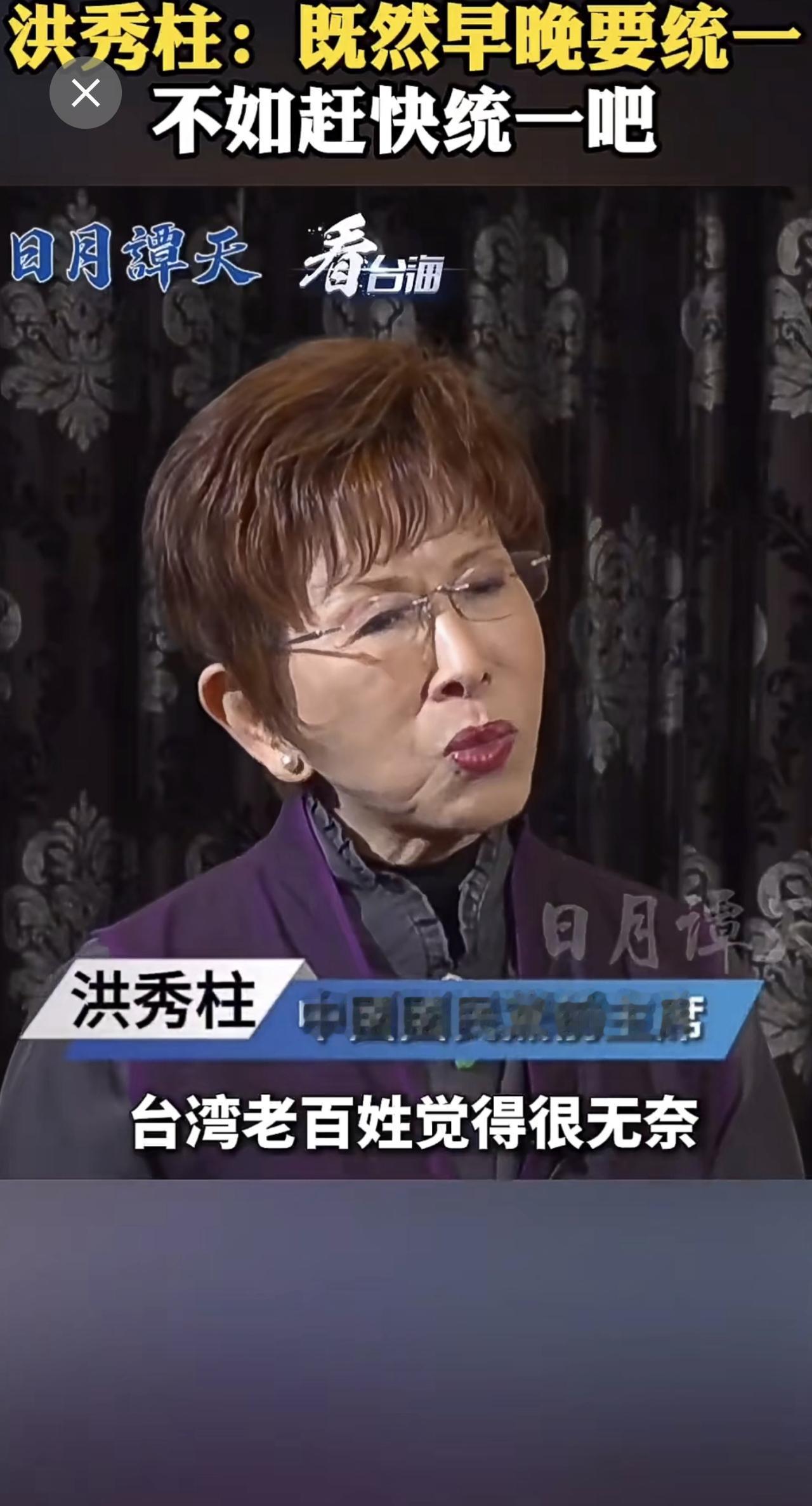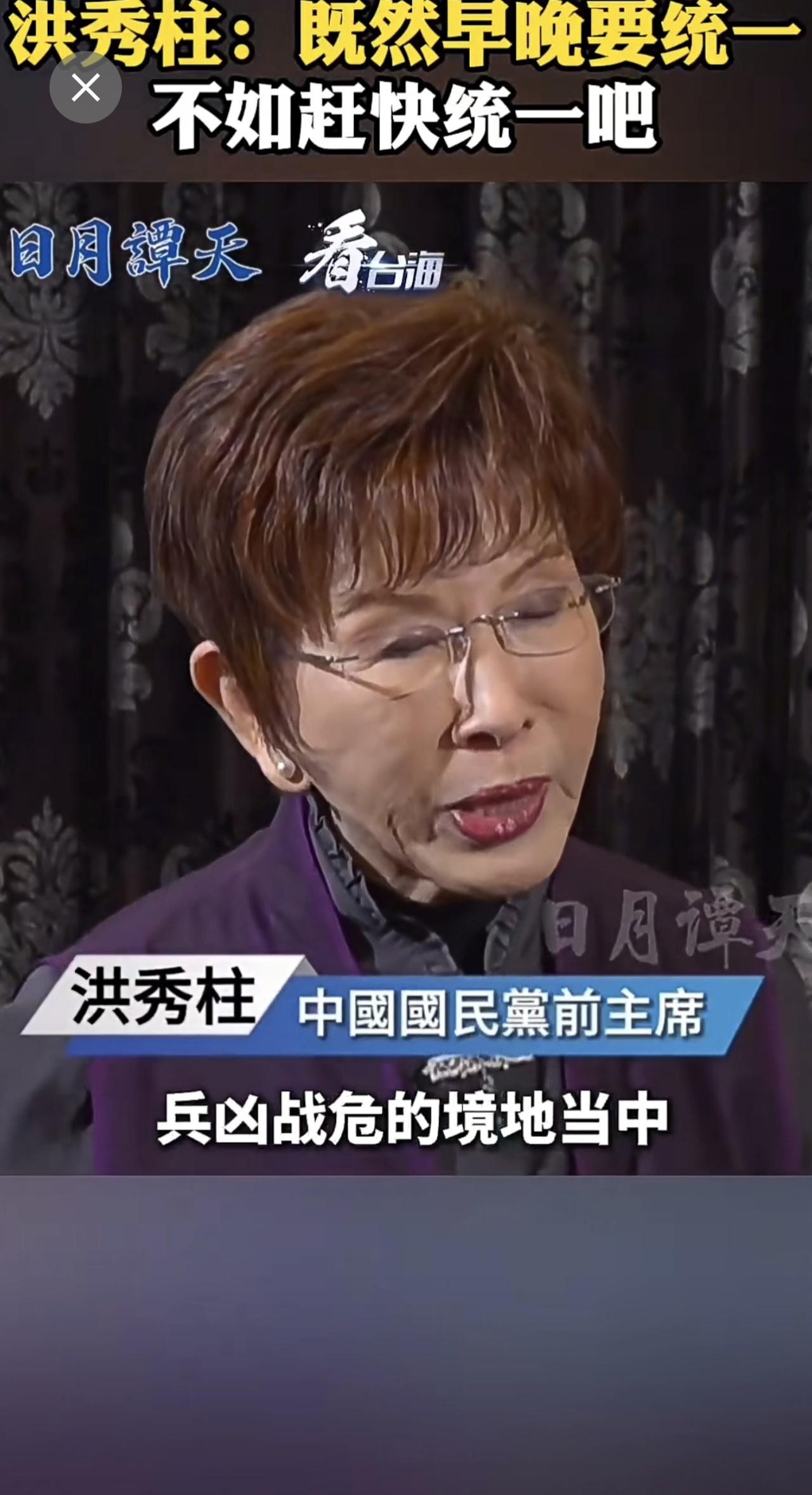 洪秀柱:既然早晚要统一,不如赶快统一吧。(来源:看台海)