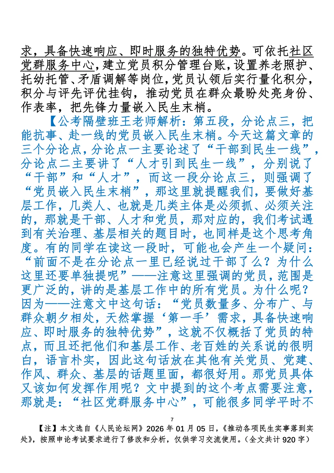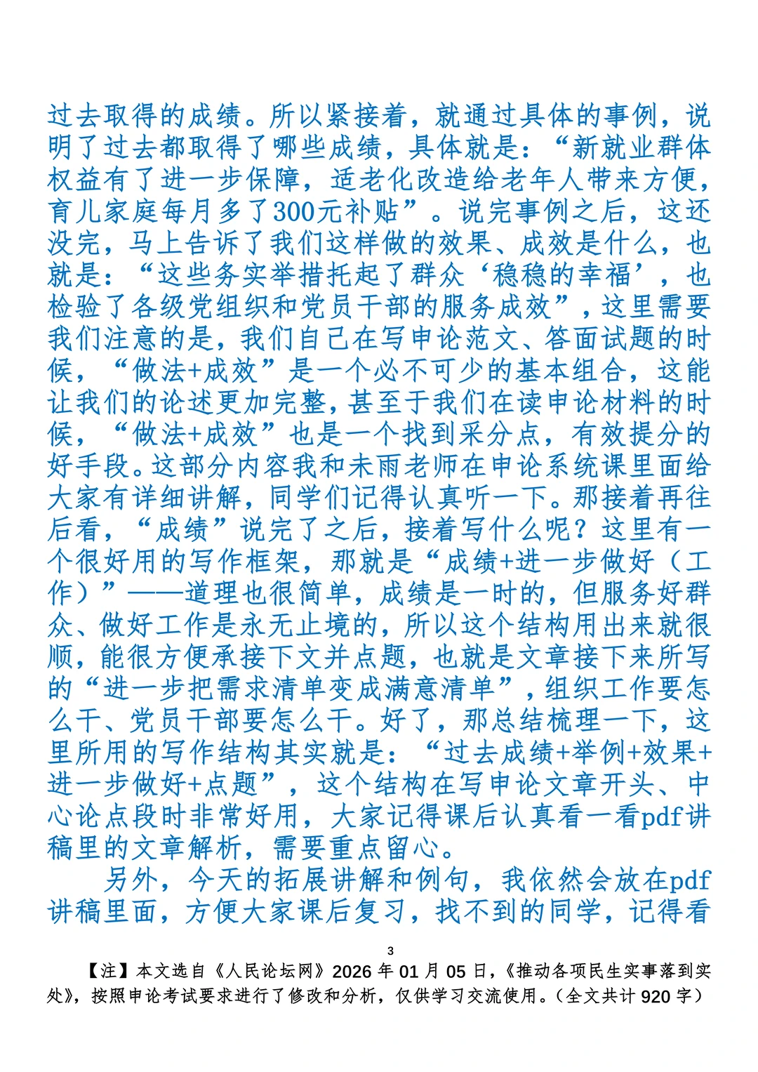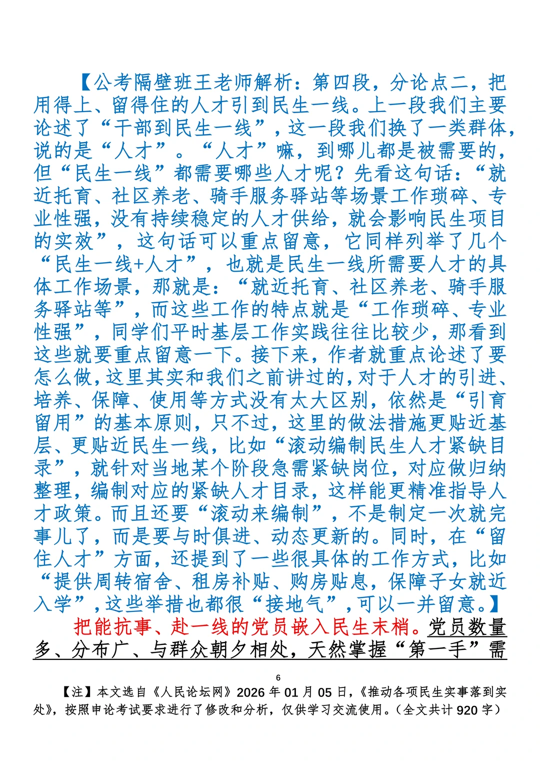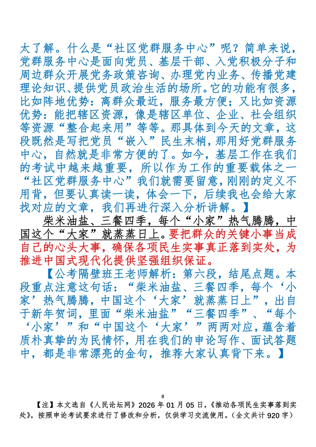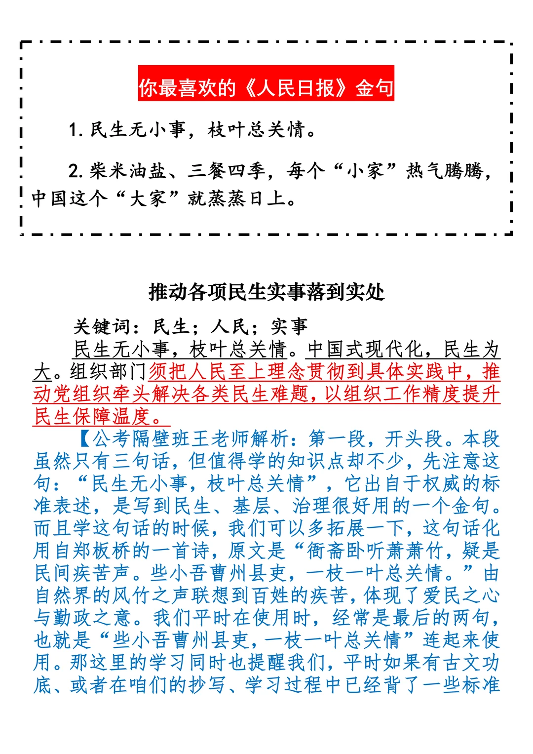 如何抄写:每日抄写文章发在“公考隔壁班王老师”账号,红色字是重点句和结构句,黑色字是正文,蓝色字是解析,大家抄写时不必抄蓝色字。建议先通读全文,做到心中有数再开始抄写,效果会更好。 关于文章:抄写文章来源于人民日报,但每篇文章我都根据申论考试要求进行了修改:一是重写或修改开头、结尾;二是统一段首句句式结构;三是调整段落字数,使文章结构更均衡;四是简化复杂长难句,使之更具可模仿性。每篇文章无论修改多少,都是基于申论考试要求,毫无对人民日报文章品评之意。(此处致敬人民日报)