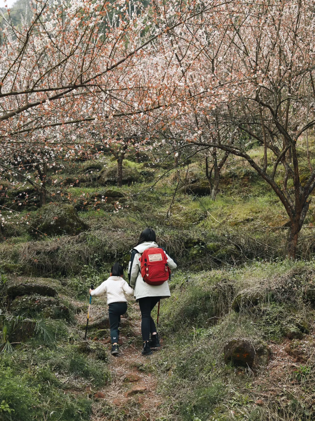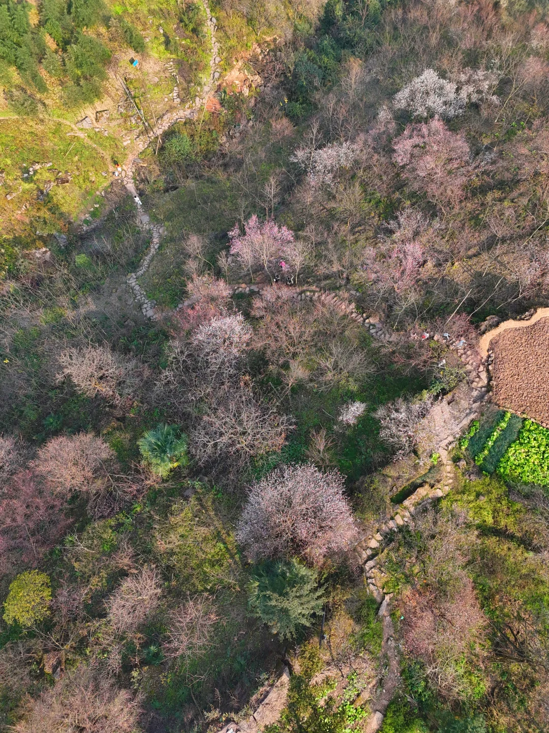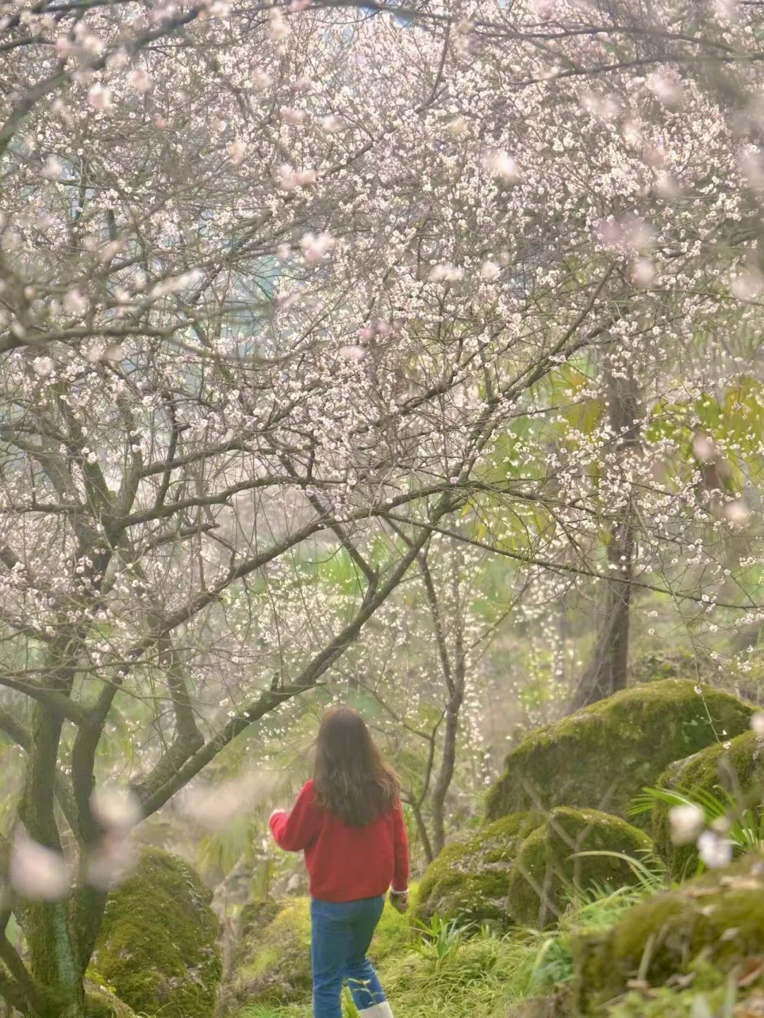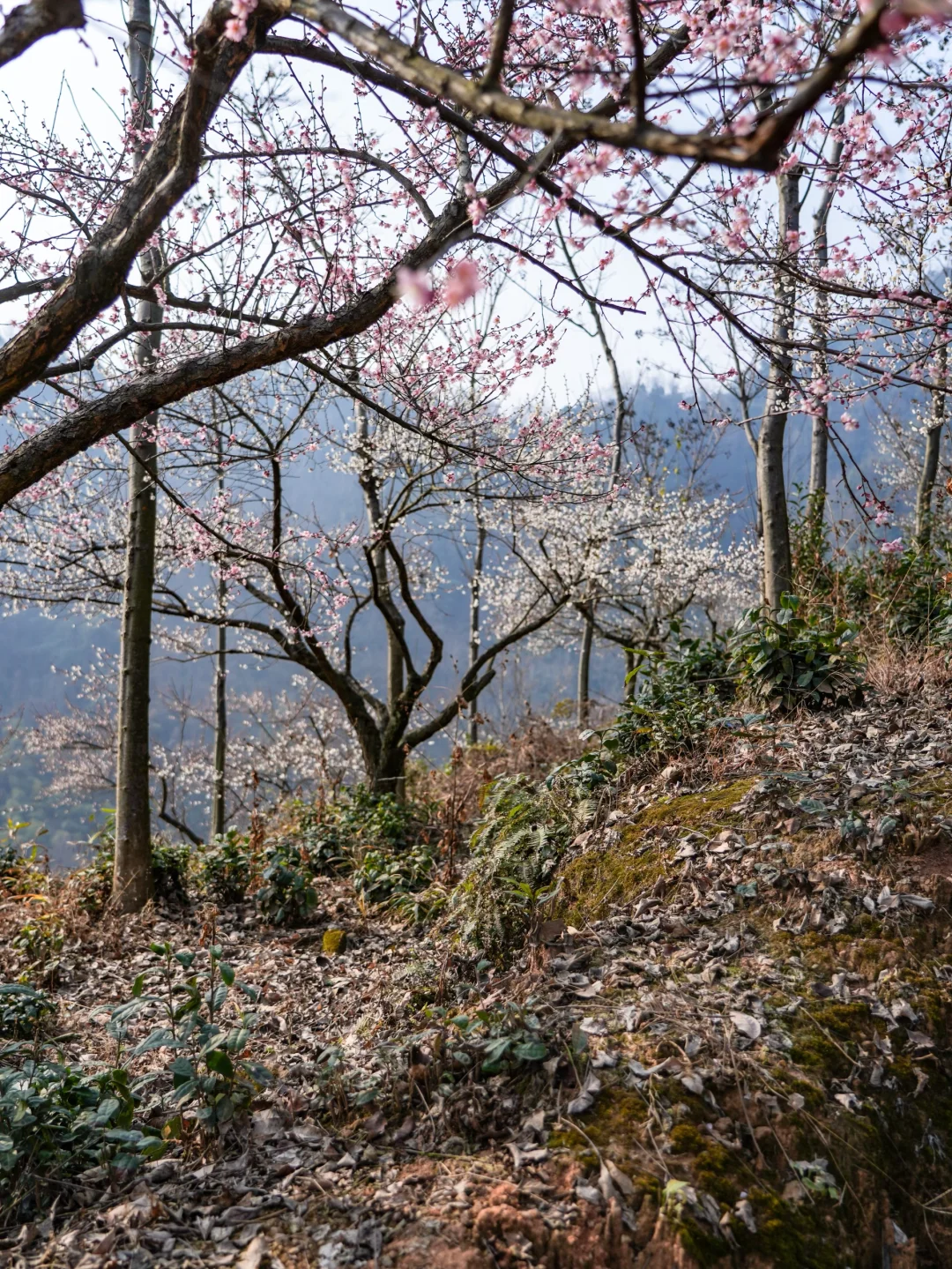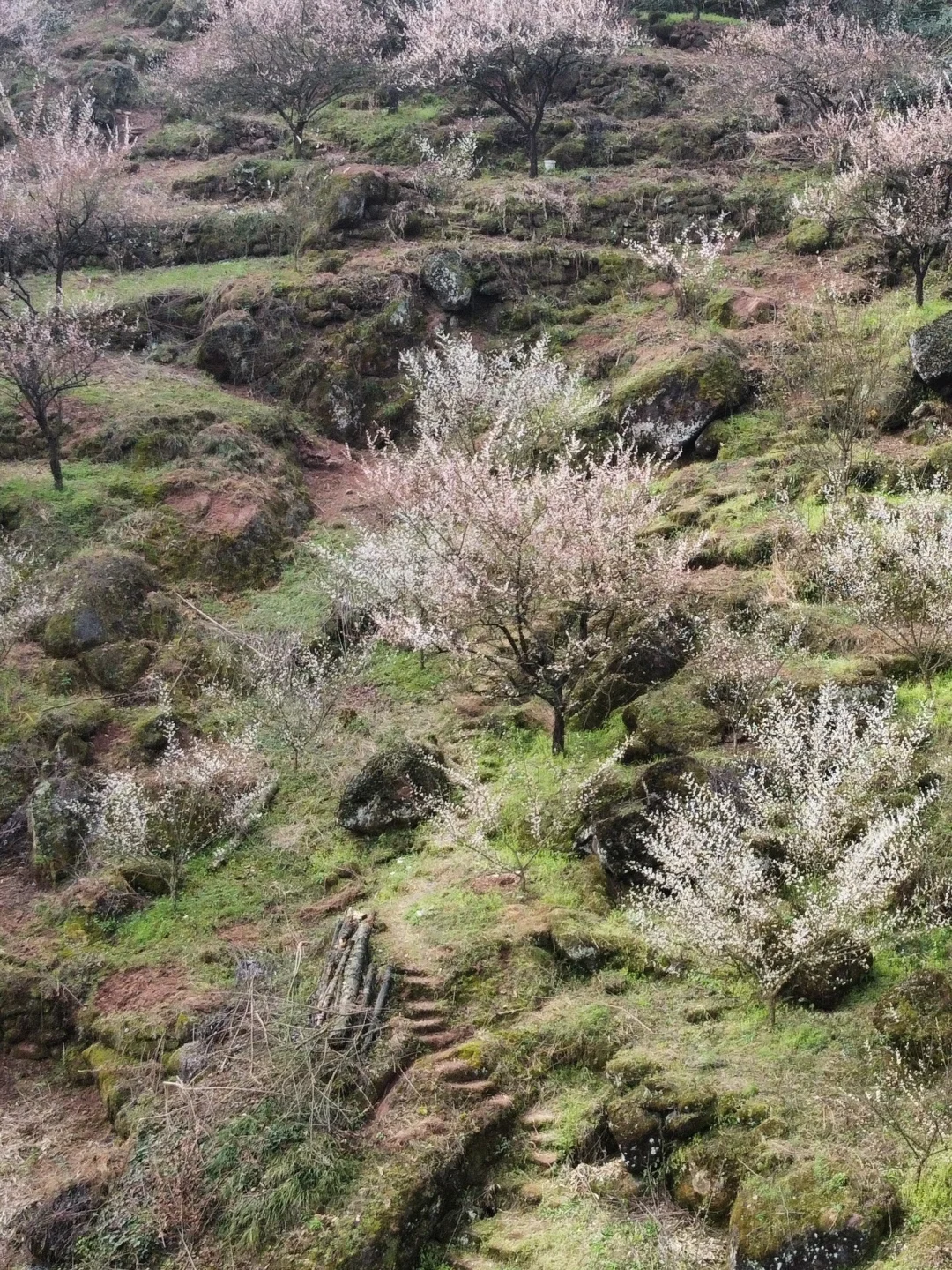 去年新晋的赏梅点,但是成片的梅花绵延几公里,白的粉的交相辉映。这里的梅花树下满是苔藓和蕨类植物景观搭配层次丰富,取景和观赏角度多