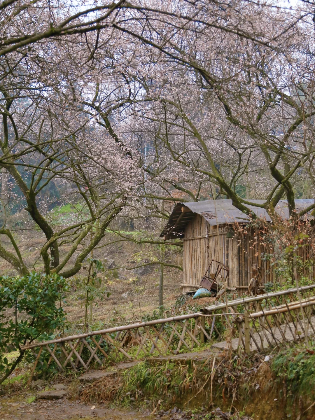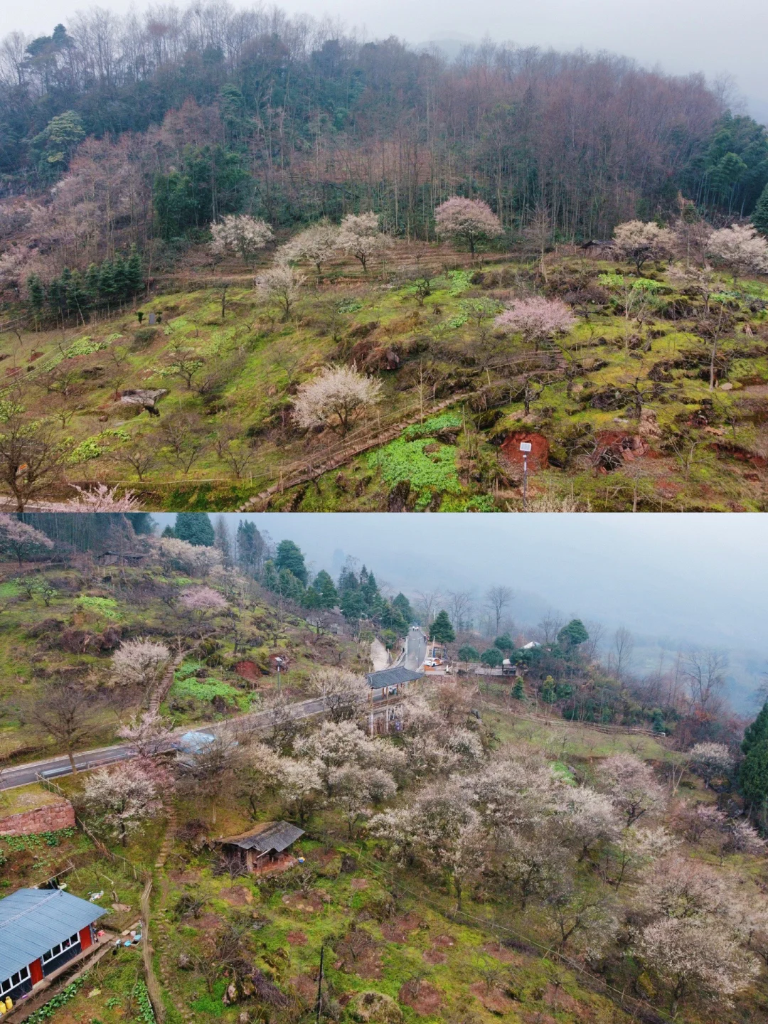 号称川版小林芝,去年突然爆火以后今年这里还翻修了一下,路已经好走很多了。一整座山上都开满了梅花,白色粉色都有,最特别的是山上有两间很古朴的瓦房,搭配的梅花点缀,拍古风大片绝绝子!