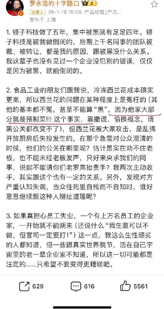 2025年9月10日,罗永浩发微博吐槽西贝:好久没吃西贝了,今天下飞机跟同事吃了一顿,发现几乎全都是预制菜,还那么贵,实在是太恶心了。希望国家尽早推动立法,强制饭馆注明是否用了预制菜。随后,这一说法引发网友广泛关注与讨论,“罗永浩吐槽西贝”相关内容登上热搜,西贝随即陷入预制菜舆论风波。
