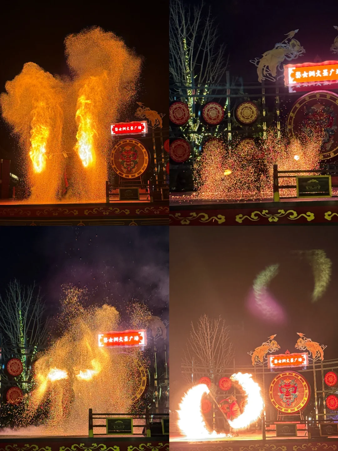 打铁花、火壶…一场场火焰交织沸腾,仿佛把夜空点燃。果然,“玩火”这件事,还得看老祖宗的浪漫与勇敢!视觉效果拉满