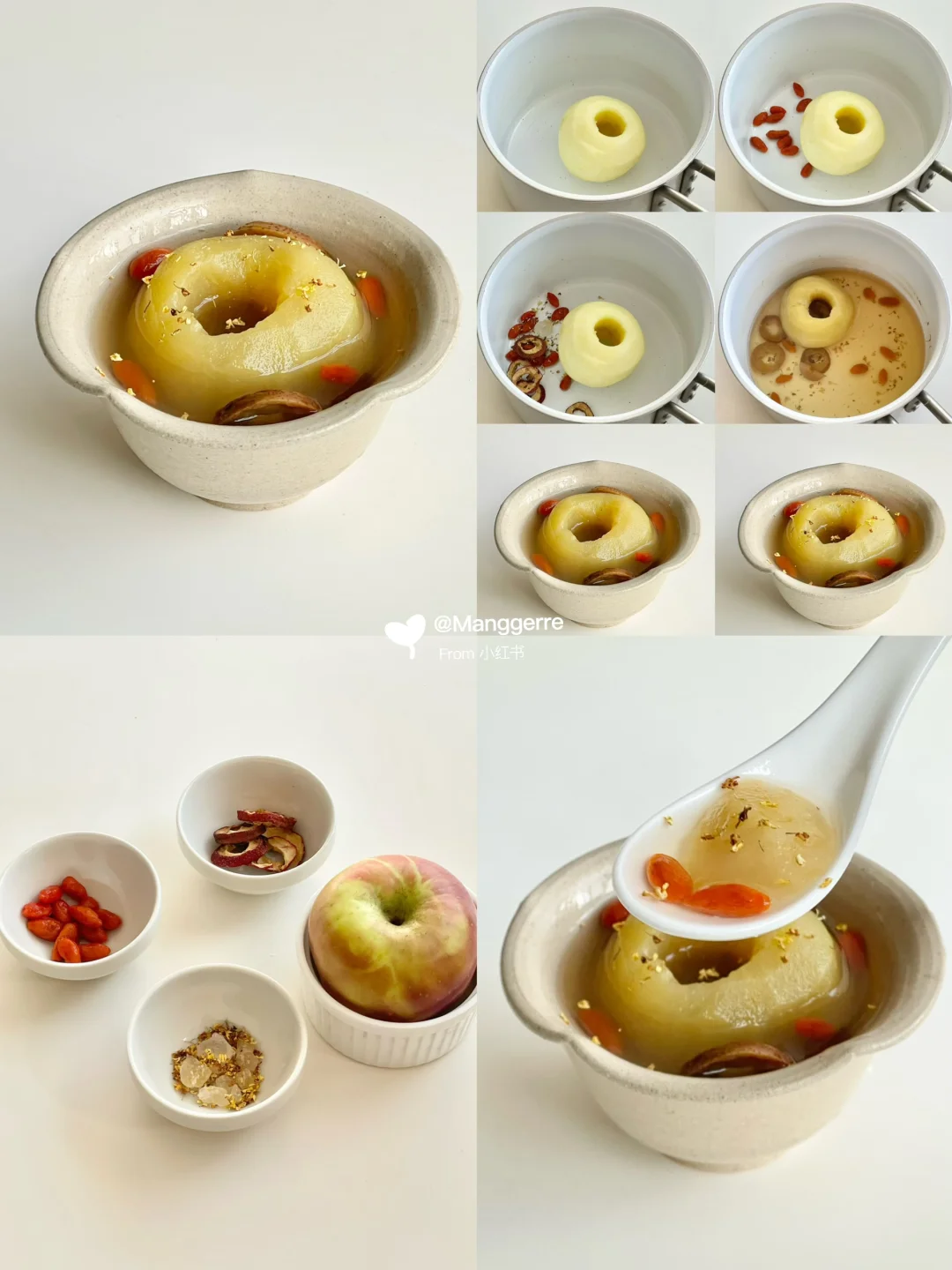 山楂5片、 苹果一个、红枣6颗、枸杞、 冰糖