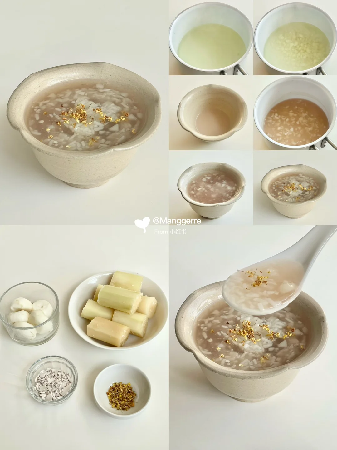 去皮马蹄3个、甘蔗200g、藕粉15g、干桂花