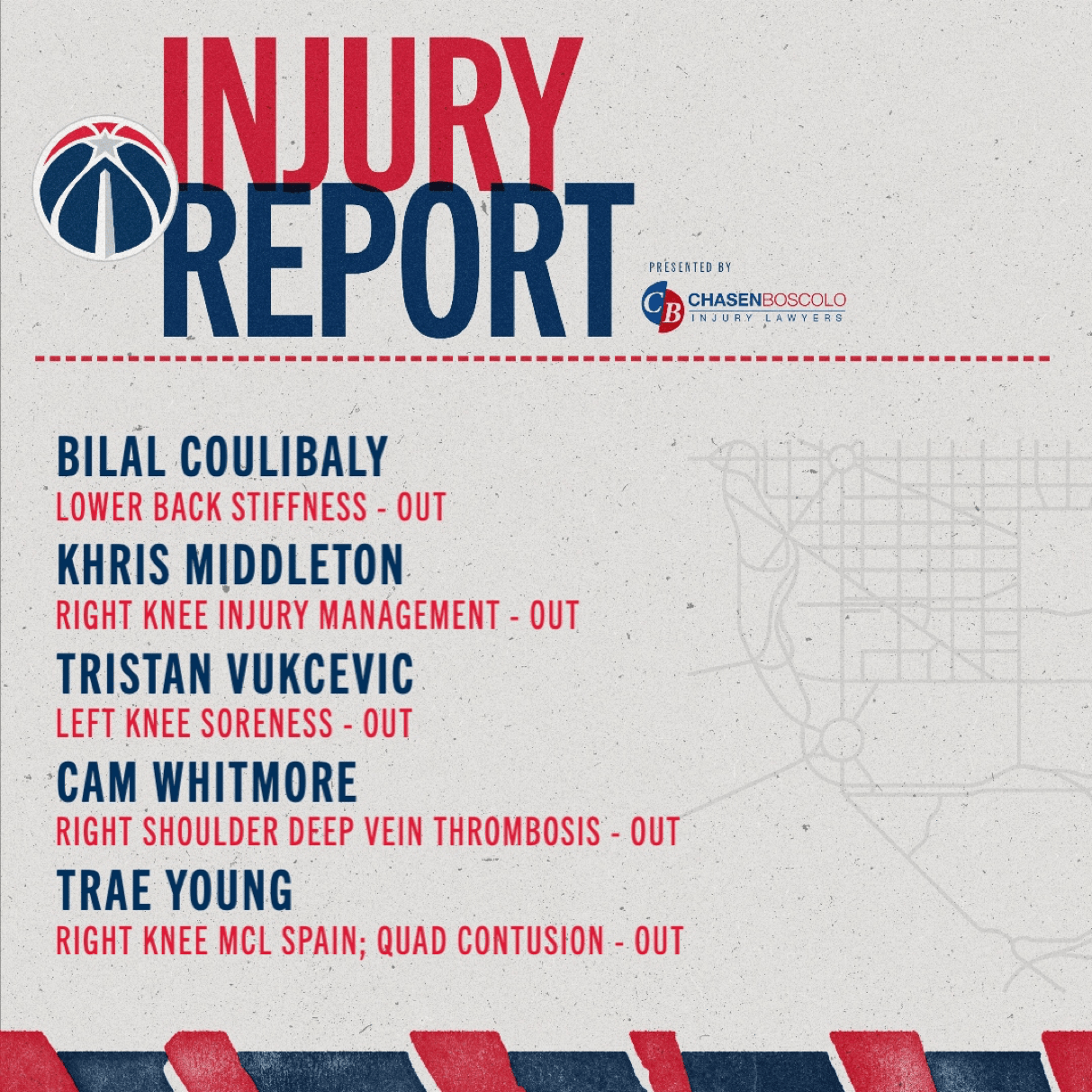 奇才官方更新了伤病报告: