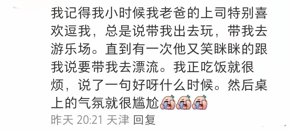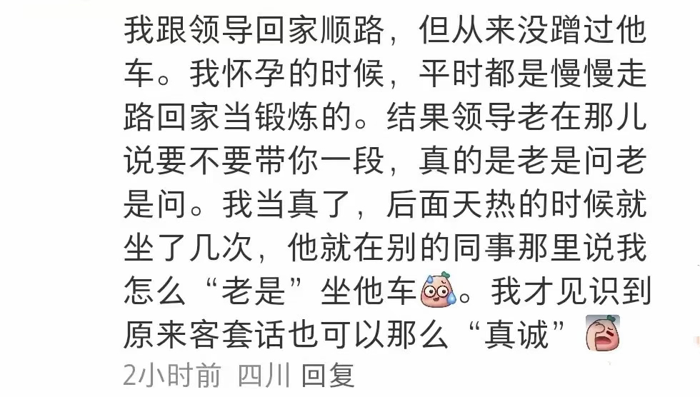 听不懂客气话的朋友belike是我了。见多了才明白有些话,他就那么一说,咱就那么一听。不过我觉得随便客套几句就行了,不要过分吹水,遇到了不按套路出牌的年轻人不就尴尬了。