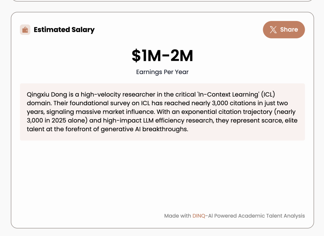 找到跟他合作最多的人脉后,还可以生成一个研究报告,看起来非常像另一版本的DINQCard,