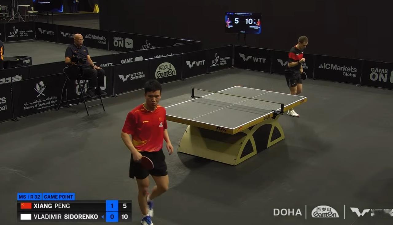我去,向鹏要被爆冷吗? 面对俄罗斯选手, 第一局向鹏打的不错, 11:6拿下 第二局 向鹏一直落后, 追到4:5的时候, 向鹏突然断电, 被俄罗斯选手, 连赢6分, 11:5直接拿下 第三局 向鹏1:4开局 一直落后, 最后7:11再丢一局。 第四局 向鹏还是落后, 叫了暂停后, 最后11:9逆转, 两人打成了2:2平。 还是怀念仁川冠军赛的向鹏, 有陈镇江指导的向鹏。