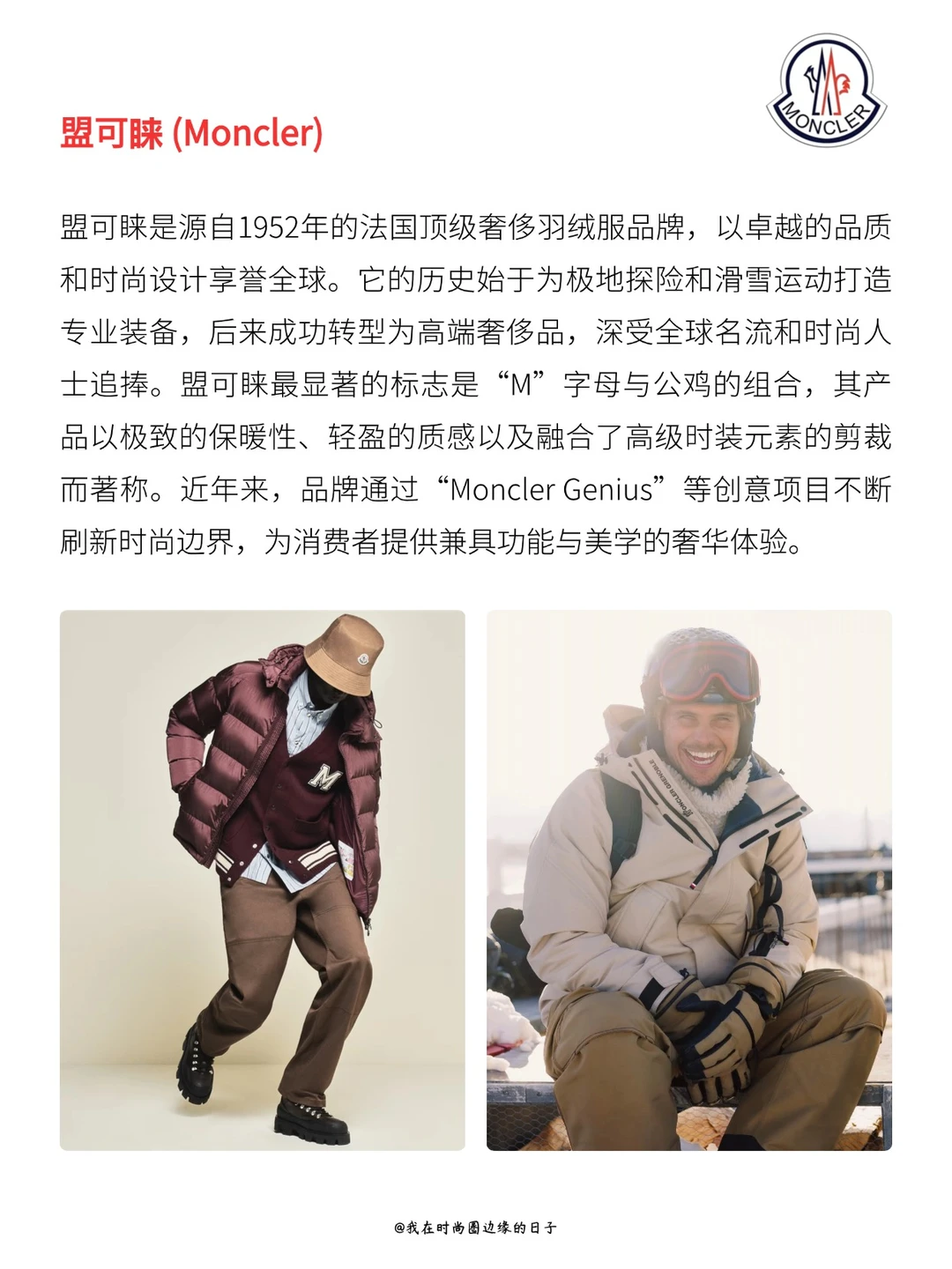 源自法国的奢侈品牌,以高端时尚羽绒服闻名于世,将精湛工艺、创新面料(如亮面尼龙)与前沿设计相结合,产品兼具卓越保暖性能和强烈的时尚奢华属性,常出现在都市街头和秀场,是冬季高端御寒与身份象征的代表。