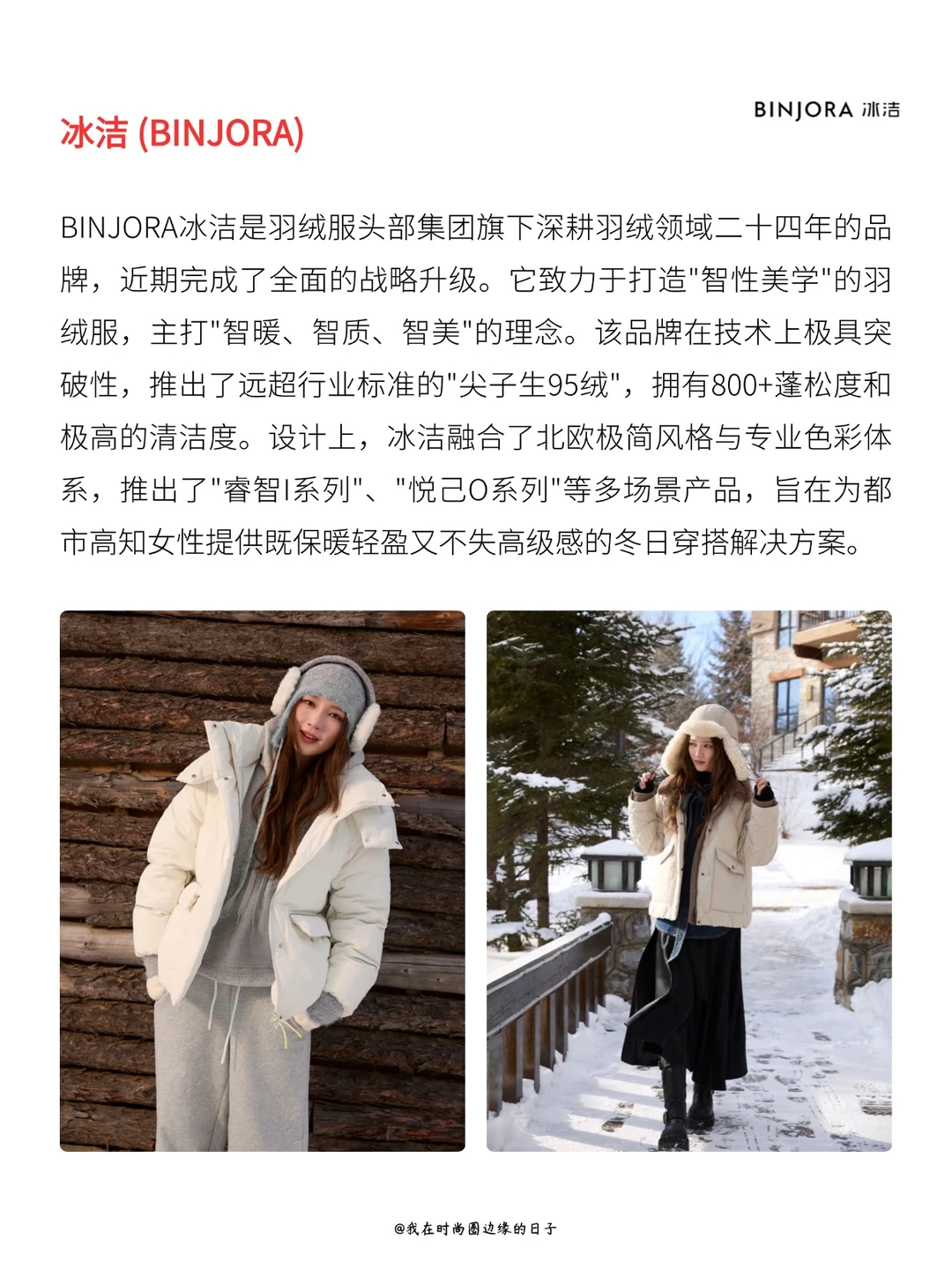 深耕羽绒品类多年,BINJORA冰洁专注于日常通勤与城市旅游场景的保暖需求。依托成熟的羽绒填充工艺,实现保暖性与轻便度的平衡配比。产品设计兼顾简约都市风格与实穿性,线条流畅利落,轻松融入职场环境,满足通勤时对专业形象与舒适体感的双重需求;同时,其百搭特性与精致细节,也适配漫步街头、探访景点等城市出游场景,让温暖与时尚随行。以扎实的品质,成为大众,特别是女性用户,冬季御寒与探索城市的高适配之选。
