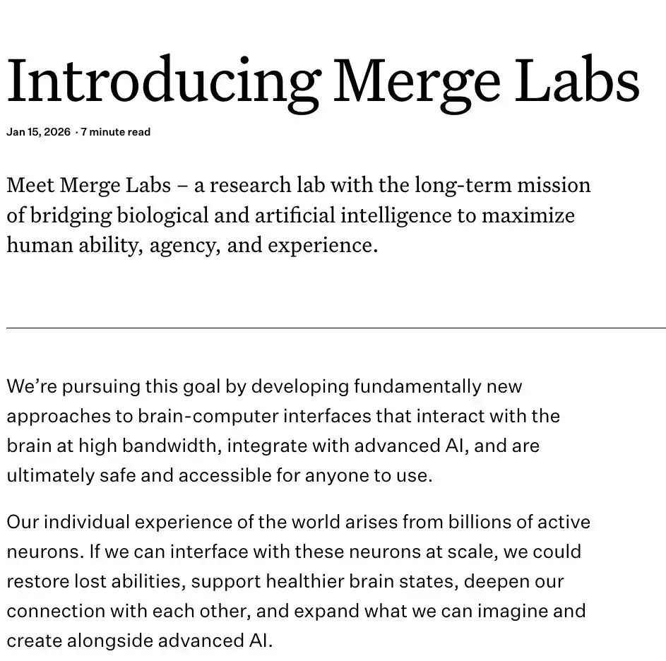 尽管公司成立仅数月、员工不足50人,甚至未公布产品原型,MergeLabs却吸引了顶级资本目光。