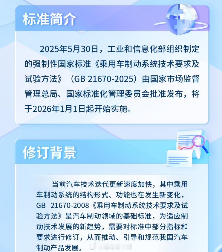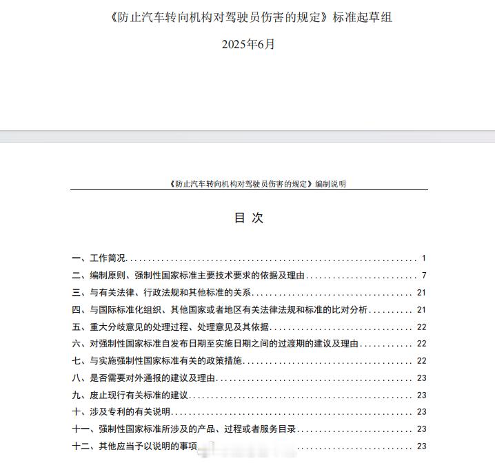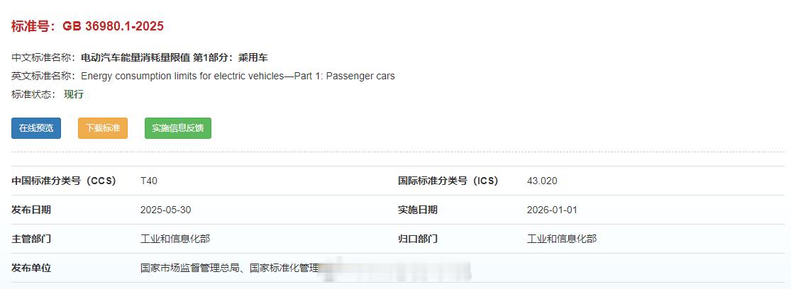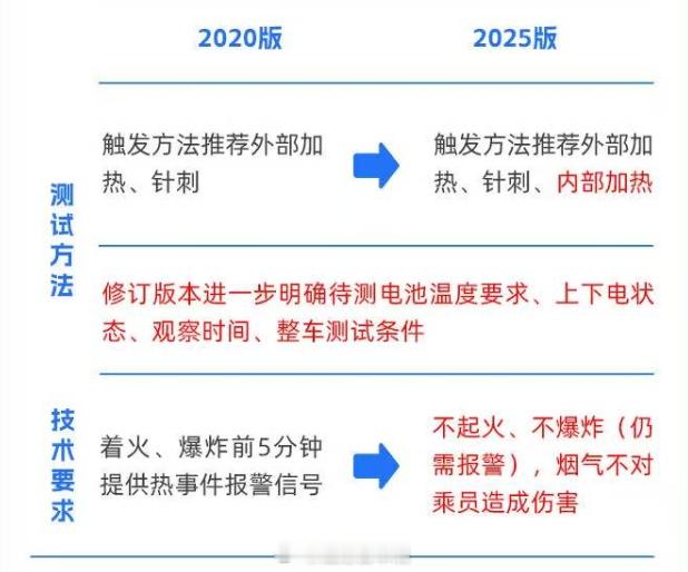 【从电池到方向盘,2025年车圈10大新规盘点,2026年陆续实施】2025年新能源汽车渗透率已经逼近60%,这个市场还需要哪些改进?技术进步非常重要,制度建设也是必不可少。2025年,与新能源汽车相关的各项制度、法规、标准都在不断完善,跟我们一起去了解一下。1⃣️电耗新国标国标标号:GB 36980.1—2025国标名称:《电动汽车能量消耗量限值 第1部分:乘用车》实施状态:2026年1月1日实施这是全球第一个电动汽车电耗限值强制性标准,号称史上最严电动车能耗国标,相比于上一代推荐性标准加严约11%,目的是进一步降低能耗,促进汽车厂商升级能效技术,缓解续航焦虑,带给消费者更多实惠。2⃣️动力电池新国标国标标号:GB 38031-2025国标名称:《电动汽车用动力蓄电池安全要求》实施状态:2026年7月1日起对新车型实施这个号称是“史上最严电池安全新规”,大幅提高热扩散安全门槛,从原有的“热失控后5分钟报警”提升为要求电池系统发生热失控后“不起火、不爆炸”。同时,新增模拟复杂路况的底部撞击安全测试,新增快充循环后的安全测试,300次快充循环后进行外部短路测试,要求不起火不爆炸。3⃣️侧碰新国标国标标号:GB20071-2025国标名称:《汽车侧面碰撞的乘员保护》实施状态:2026年7月1日碰撞试验后,在乘员舱内的电池不应发生位置移动;在乘员舱外的电池任何部分不允许进入乘员舱;碰撞结束后30分钟内动力电池不起火不爆炸;增加了触电防护要求。4⃣️单踏板模式国标标号:GB 21670—2025国标名称:《乘用车制动系统技术要求及试验方法》实施状态:2026年1月1日实施首次在国标中规范“单踏板模式”:规定仅松踏板不应使车辆减速至停车,特殊模式需有明确光学提示。新国标的目的是统一行业对再生制动的设计和标定,减少因操作混淆引发的安全风险。5⃣️线控转向新国标国标标号:GB 17675-2025国标名称:《汽车转向系 基本要求》实施状态:2026年7月1日实施这是一项促进汽车从机械时代转向智能时代的关键国标,它删除了旧版国标中转向系统必须保留机械连接的强制要求,意味着方向盘与车轮之间可以通过电子信号传递指令,不再依赖物理转向柱,为线控转向、电动助力转向等新型技术扫清了法规障碍。6⃣️转向机构新国标国标标号:征求意见稿(现行国标标号GB 11557-2011)国标名称:《防止汽车转向机构对驾驶员伤害的规定》实施状态:2026年7月1日实施更改正面固定避障碰撞试验后的电安全要求,针对新能源汽车碰撞后的电安全、安全气囊展开时的飞溅物等情况进行了修正。7⃣️辅助驾驶新国标国标标号:征求意见稿国标名称:《智能网联汽车组合驾驶辅助系统安全要求》实施状态:2027年1月1日实施针对单车道、多车道、领航辅助等不同功能,设置了人机交互、功能安全和预期功能安全、信息安全、数据记录等全方位安全技术要求,要求系统具备手部脱离检测以及视线脱离检测能力,在驾驶员未及时响应系统报警的前提下可控地退出激活状态。8⃣️车门把手新国标国标标号:征求意见稿国标名称:《汽车车门把手安全技术要求》实施状态:公示中明确要求每个车门必须配置具备机械释放功能的车门外门把手,以及手部操作空间,针对隐藏式门把手可能存在的救援风险进行规范,终结“机械门把手是否有必要”的民间争议。9⃣️汽车OTA新国标国标标号:工信部通知国标名称:市场监管总局工业和信息化部关于加强智能网联新能源汽车产品召回、生产一致性监督管理与规范宣传的通知实施状态:已实施要求企业在机动车合格证系统准确填报关键信息,严格执行OTA升级活动分类管理要求,未经备案不得开展OTA升级,不得推送未充分测试软件,不得隐瞒缺陷,确保产品与准入一致并担责。对未按要求补充报送材料、车辆性能与参数不符、违规开展OTA升级等情况依规处理,对频繁开展OTA升级的企业重点抽查和专项核查。🔟购置税新政策国标标号:产业政策国标名称:减免车辆购置税新能源汽车产品技术要求(2026-2027年)实施状态:2026年1月1日插电式(含增程式)混合动力乘用车纯电动续航里程不低于100km,与此前的43km相比大幅提升,目的是通过税收优惠政策持续引导产品技术升级,进一步推动低碳化发展,同时降低用户用车成本。结束语🔚作为一个汽车人,我曾经说过中国汽车行业的相关法律法规滞后于行业技术发展速度的客观事实,好消息是:这个现状正在被改变。回顾汽车圈“2025年十大新规”可以发现,这些新规涉及的范围非常广。根据标普全球汽车数据的统计,2025年中国汽车销量预计将突破3400万辆,中国新能源汽车渗透率也已逼近60%,可以说是狂飙突进,但随之而来的也有把用户当试验品、钻法规空子、以次充好甚至弄虚作假的现象,这些,都需要法律法规来约束,这好比是骏马的缰绳,它不是骏马的负担,而是为了让骏马跑得更远。我也期待,在这些法规的护航下,2026年的中国汽车工业将会走得更稳、更远!