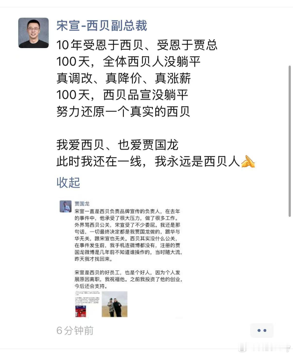 今晚热闹了,贾国龙的朋友圈发文能看出来西贝经营确实受到很大影响了,今晚要吹响反击