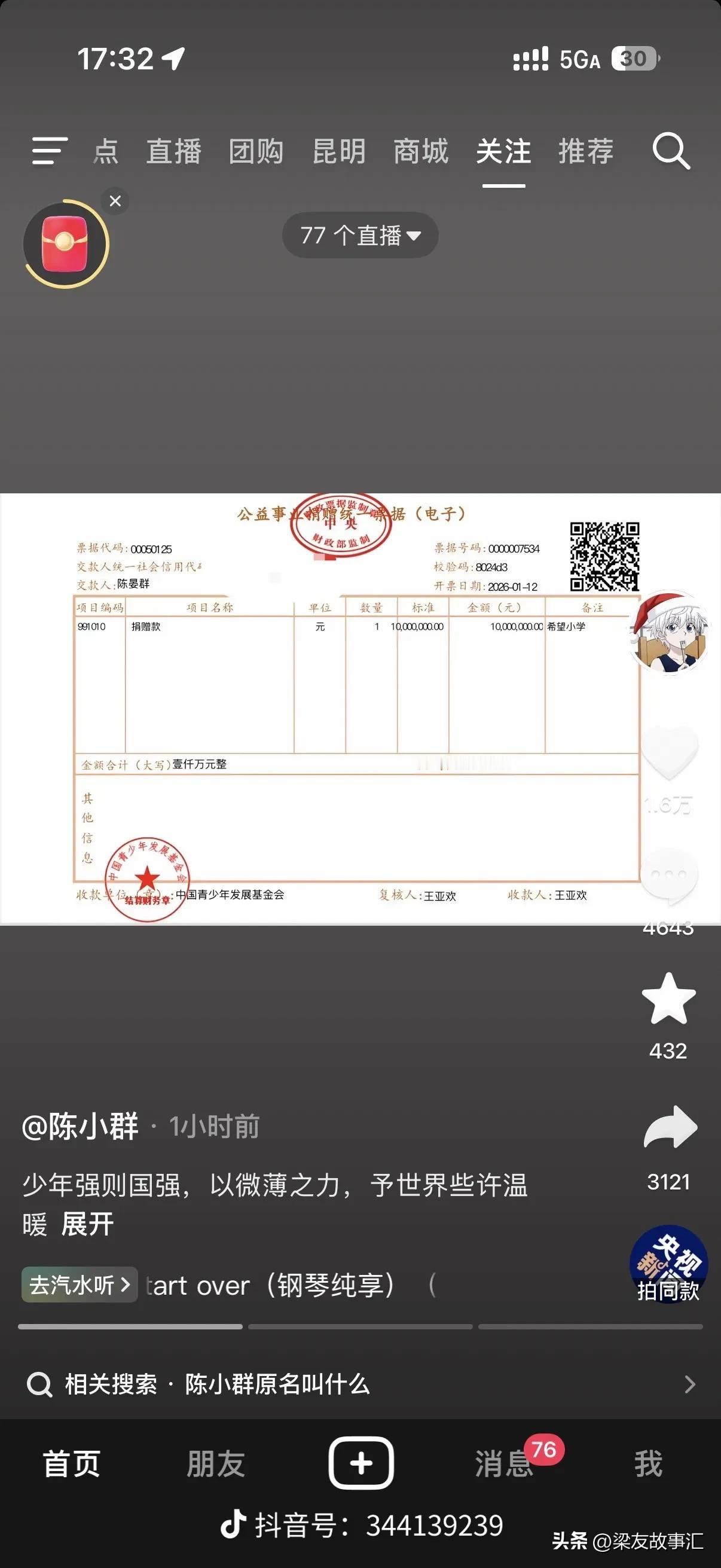 突发:陈小群清空了抖音! 大A大连黄河路总舵主,重庆解放碑刺客陈小群今天清空了抖音的视频信息! 陈小群于2026.1.12日晒出的捐建希望小学1000万的视频已不见了,或者隐藏了! 陈小群总为人低调,操作手法凶悍!给大A带来了活水!陈小群 股票陈小群 陈小群主控 陈小群复盘计划