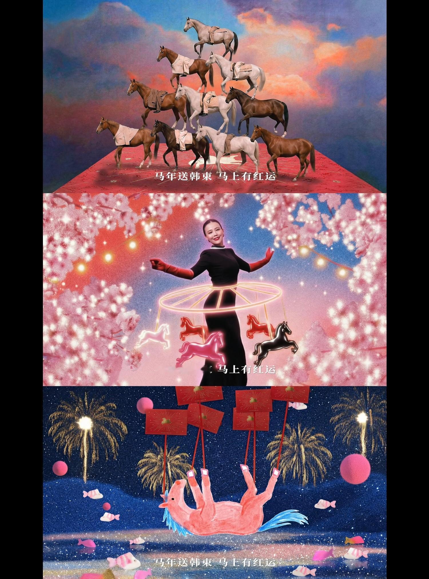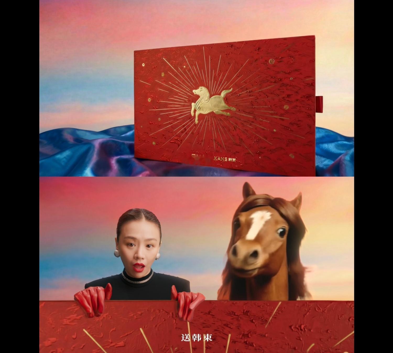韩束大片后遗症:看见马就想喊“马年送韩束马上有红运”!开头就是两匹扎麻花辫的马一脸无辜看着我是何意味!还有为什么马尾巴会像奶油一样化开啊!魔性旋律简直刻进DNA!而且隐隐约约的马叫声是什么鬼!脑洞真的好大!马年送韩束马上有红运 韩束