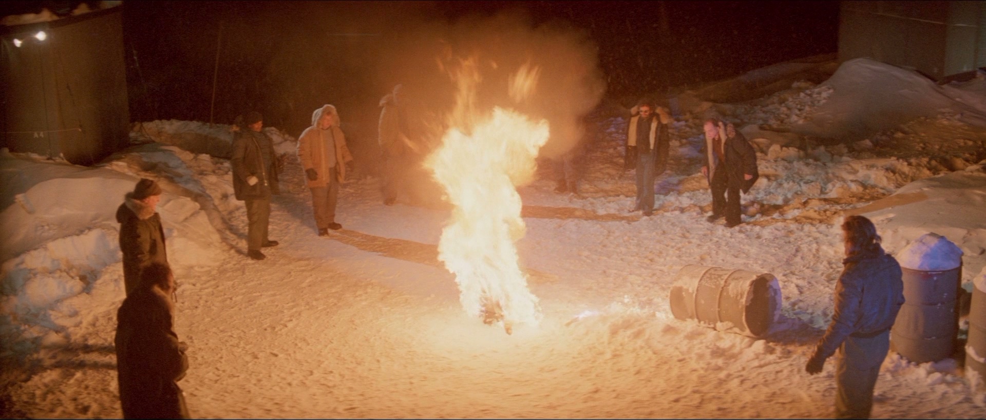 【电影评荐】《怪形》(1982)比《异形》更加精彩的经典科幻恐怖片,讲述一群南极科考队员在冰封雪原上遭遇完全未知、不可名状的诡怪生命的故事,约翰·卡朋特导演,库尔特·拉塞尔主演,被评为影史恐怖片百佳,豆瓣8.2分。不少设定相当克苏鲁,尤其接近于著名的《疯狂山脉》。剧中的外星生物太有创意了,后来各类影剧里的外星生物也几乎无有能出其右者!根据设定,怪形在感染人或动物后便会吞噬掉宿主,并在融合的同时启动模仿程序,过一段时间即可完美展现出宿主的样子。在身份曝光或开始新一轮袭击时,宿主外壳会被撕裂,很快从规整精美的模样蜕化为任意伸展、扩张、刺击、变形、裂解的无定形态——在此意义上,怪形倒是颇为契合于法国哲学家德勒兹提出的“无器官的身体”概念(受启发于弗朗西斯·培根画作中扭曲畸变的肉身)~本片的特效团队堪称无敌,基本靠手工打造的传统特效(模型为主)直到今日都不过时,那些人、狗、节肢动物及血肉黏液无序混杂的模型与道具看起来比数字特效质感更加真实恶心!另外不得不提的是,英文片名“The Thing”简练又巧妙地彰显了这种外星生物的难以命名、超出人类认知的怪异,可以说这片才是真正的“某种物质”,也早已成为身体恐怖(Body Horror)亚类型电影中的至高之作。和俯拾皆是的平庸怪兽电影不同,本片不仅有让人惊掉下巴的生动特效,在悬疑推理上也可圈可点。一方面是南极大陆科考站的恶劣环境+封闭空间,天然自带足够张力。更可怕的是,身边的每个人都可能是披着人皮的怪兽,信任完全被猜忌敌视所取代(真正突出了萨特说的“他人即地狱”),这才是最使人压抑紧张之处。因此也有不少网友将本片视作“狼人杀”的鼻祖。你很难瞅见大多数惊悚/恐怖片里主角团频频犯蠢、尖叫连连或缺乏逻辑的行为,相反,几位主要角色的行动大都迅速又理智,故事的中后半程几乎都是男主角掌控着局面,尽力在随时可能演变成大逃杀般的险恶局面中压制与调动众人,虽“霸蛮”却有效。视听语言上,流畅的运动镜头、主观镜头(如前期多次以狗狗的低机位主观视角呈现周遭环境,暗藏杀机)、跳切与两极镜头(特写和全远景组接在一起)都强化了心惊肉跳的震撼感。白雪与火焰的并置,不少雾霭、烟气与夜色中的红蓝光晕的运用也独具美感。埃尼奥·莫里康内的配乐亦烘托出了那种直逼身心极限的末世绝望情绪……《怪形》的结局也完美得恰到好处,面对怪形试图躲藏冷冻自己直到被外来人类发现由此感染扩散至全球的意图,唯有点燃一切的勇毅决绝又自我牺牲的英雄主义方有希望阻止它的诡计得逞。最后场景中,两人面面相觑彼此提防(对方是否已不再是人类?)地枯坐室外等待着必死的命途,半开放结局哀凉又诗意~(9.5/10)跨年电影愿影评