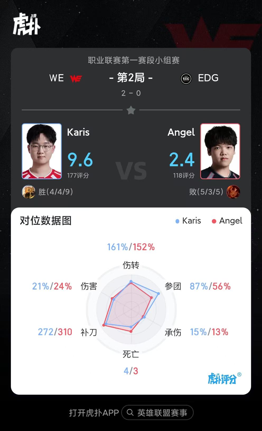 Karis操刀沙皇打出4/4/9战绩拿到WE对阵EDG次局比赛MVP