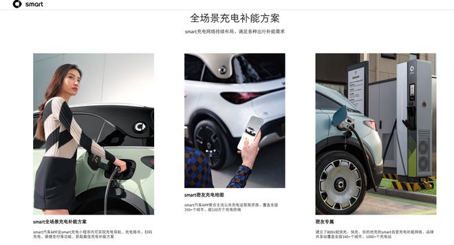 此外,smart建立了800V超快充、快充、目的地充的自营充电补能网络,品牌共享站覆盖全国160+个城市,1000+个充电站