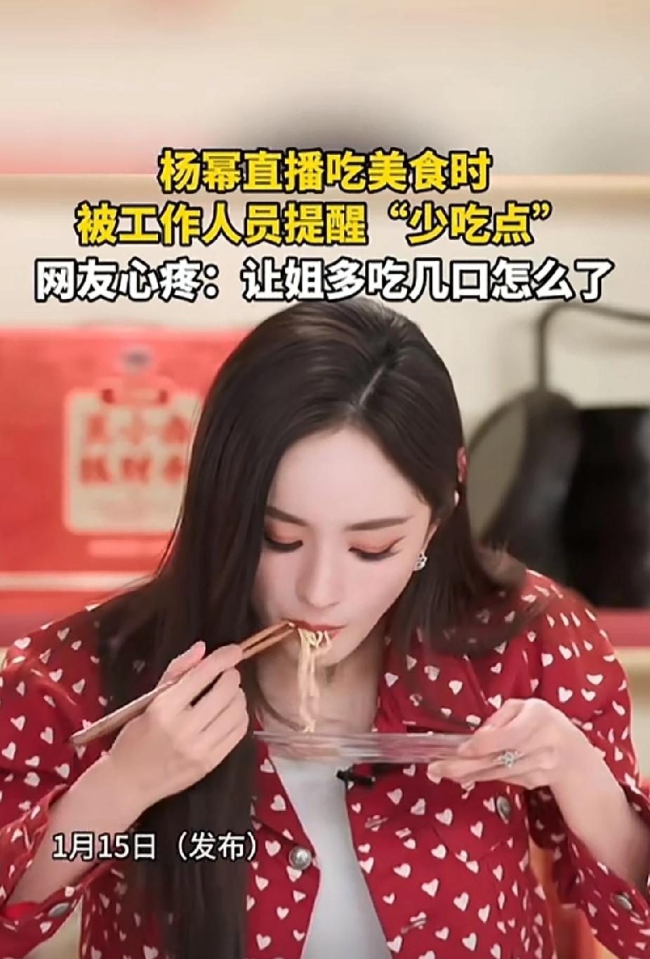 杨幂直播吃美食,精致的餐盘里三五根面条,小心翼翼的吃进嘴里,还没吸溜进去呢,旁边