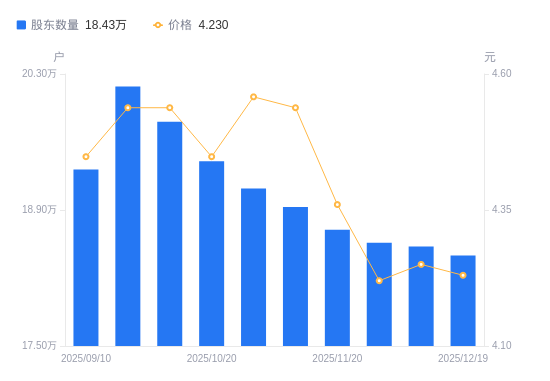日期A股户数(户)流通A股户均持股数(股)户均持股市值(万元)2025-12-3118314731647.8213.422025-12-1918430531448.9813.302025-12-1018524431289.5613.302025-11-2818564031222.8213.182025-11-2018696631001.3813.522025-11-1018930630618.1713.892025-10-3119122130311.5513.822025-10-2019401529875.0313.292025-09-3019809729259.4213.282025-09-1920171828734.1913.04