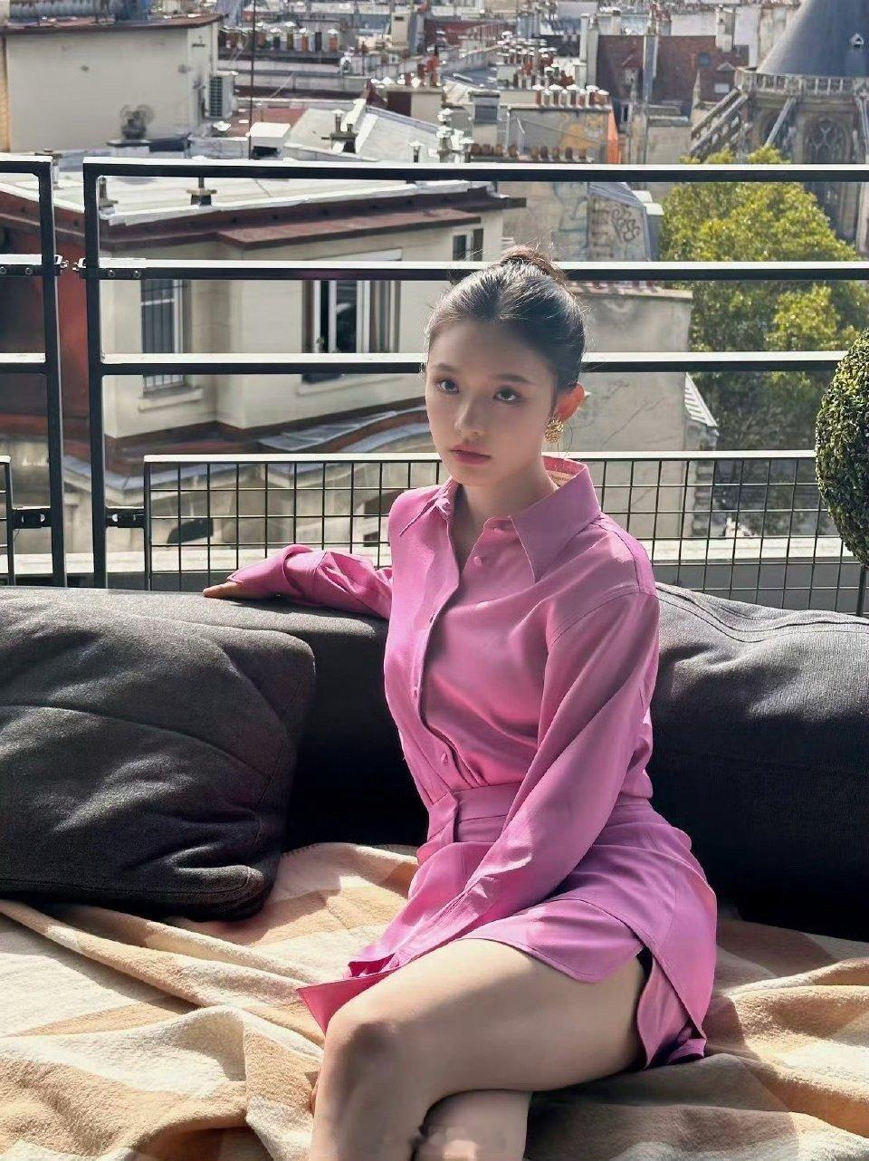 夏日清凉穿搭,粉嫩背景下的甜美少女