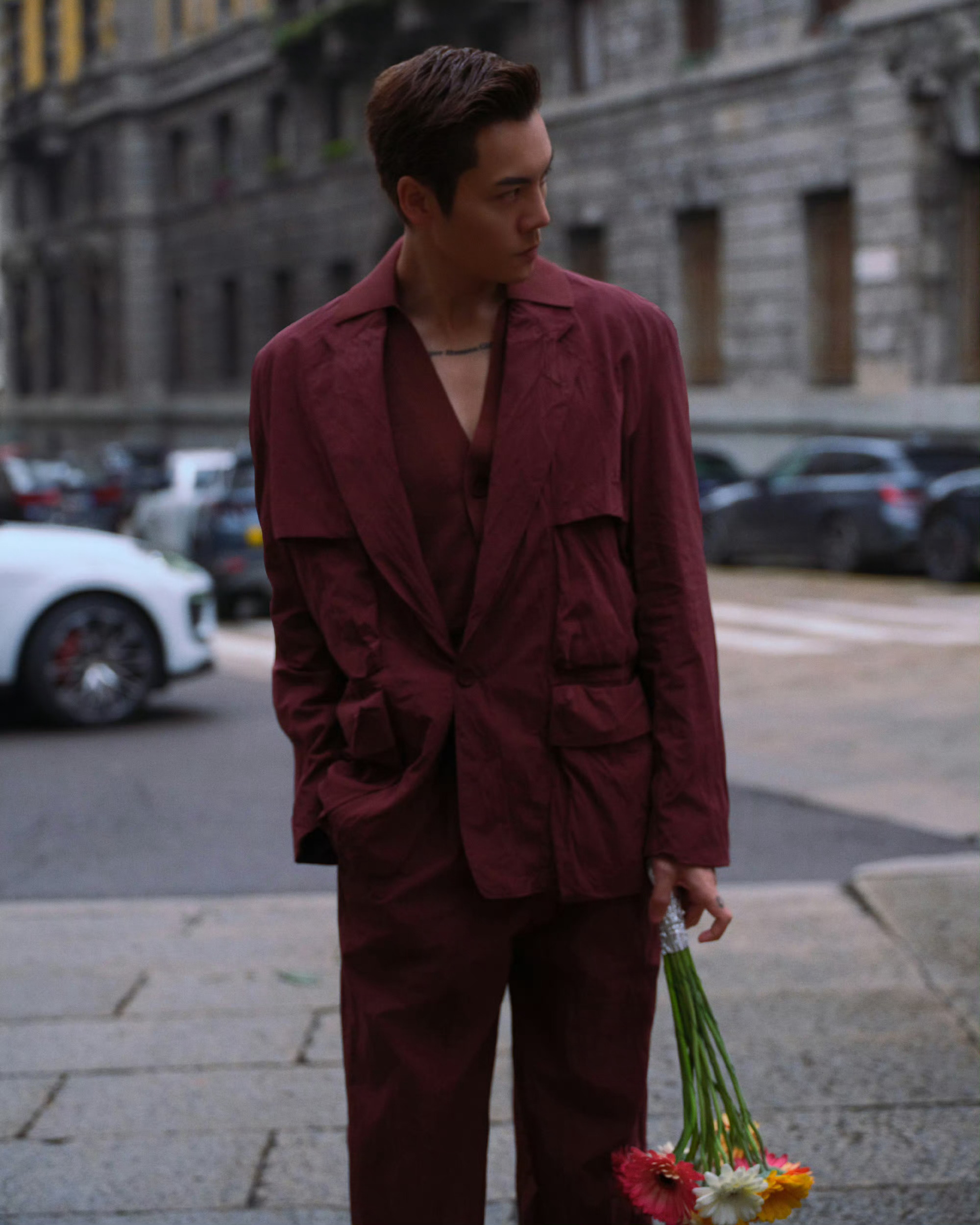 陈伟霆|Zegna Menswear F/W 2026 Fashion Show看秀造型图集发布!陈伟霆身着Zegna酒红色套装亮相,即将出席品牌2026秋冬系列大秀,时隔多年重返秀场,他以愈发沉稳的气质诠释意式风范,而怀抱鲜花、手握冰淇淋的街头瞬间,又轻巧展露松弛鲜活一面——动静之间,风格自成风景~💐男装周米兰男装周