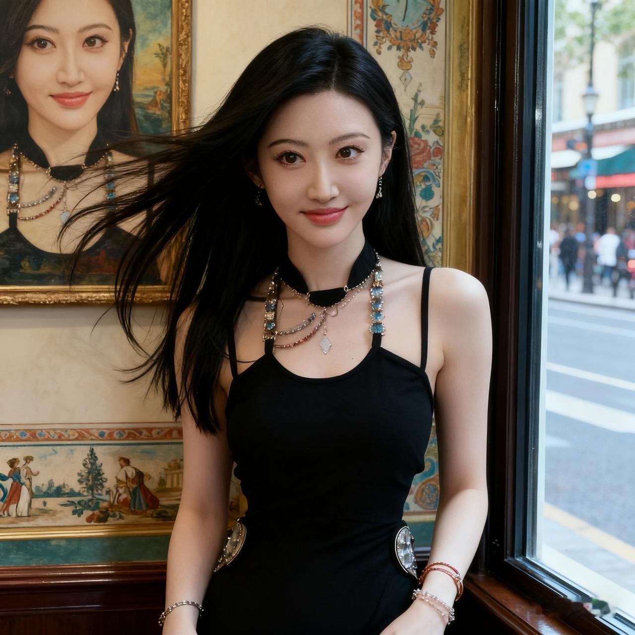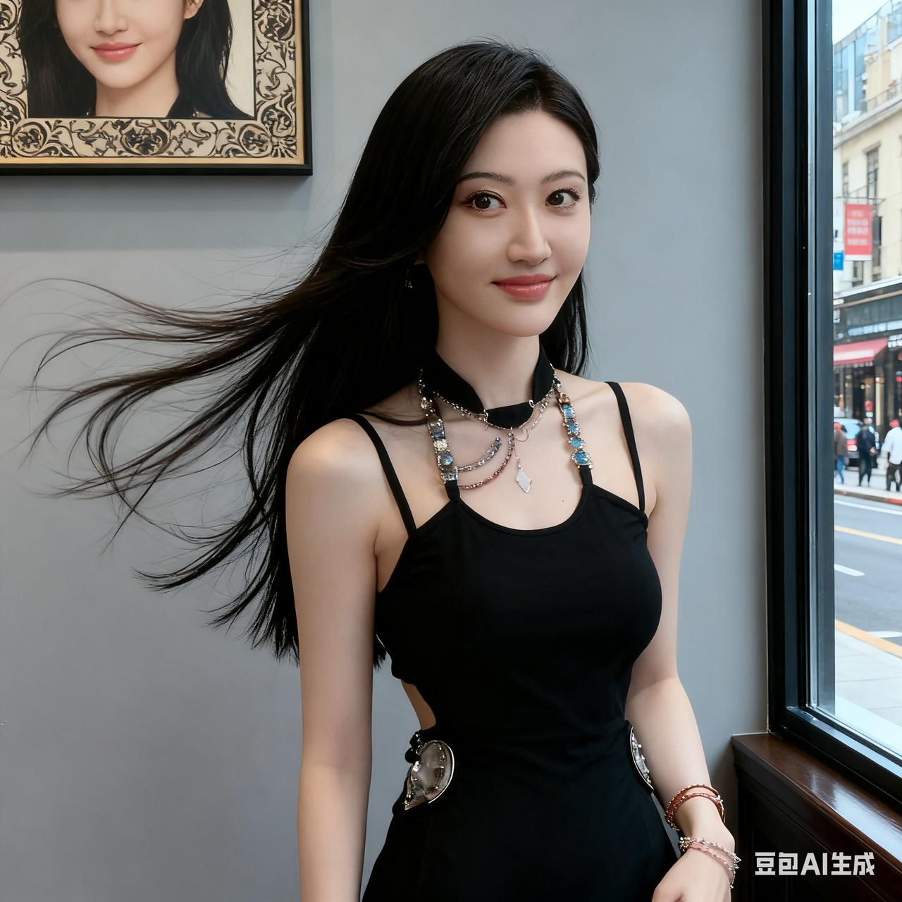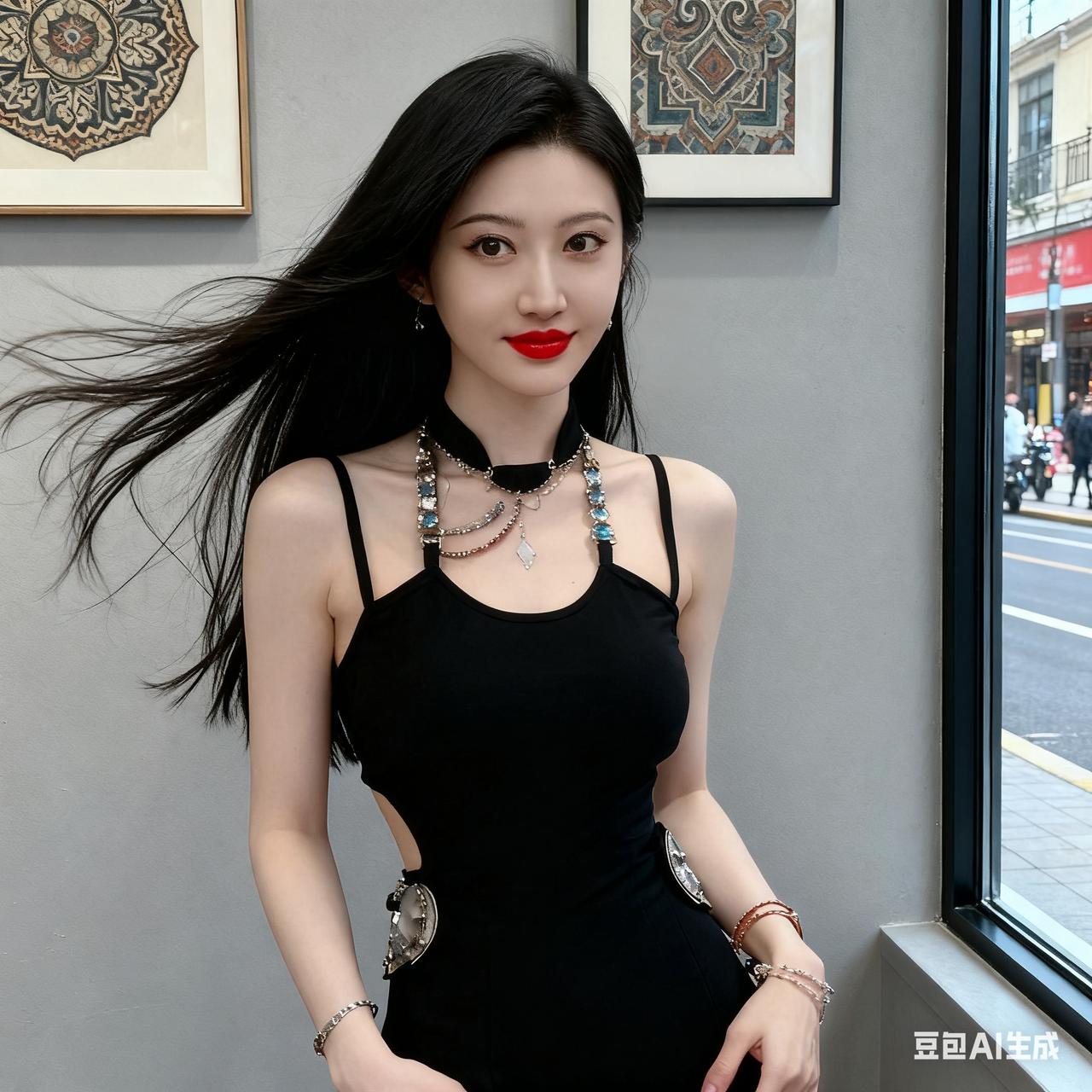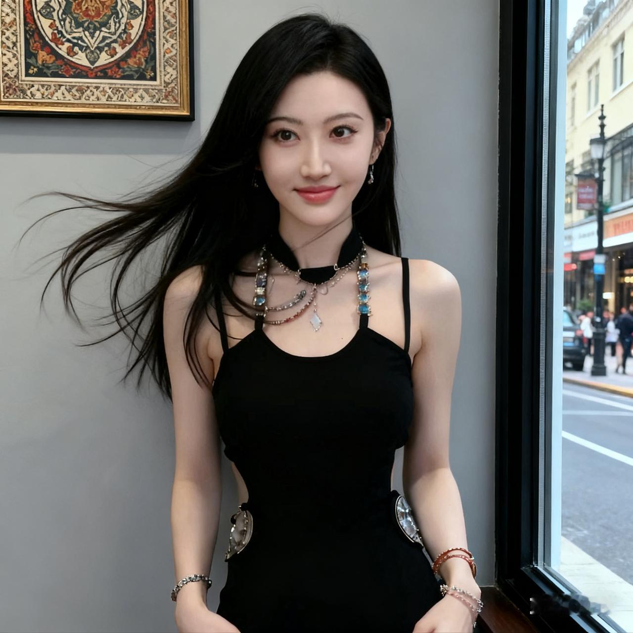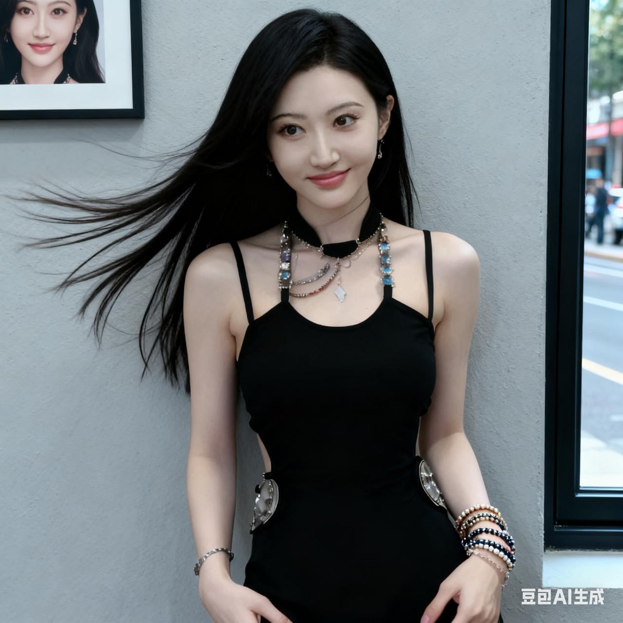 都市时尚女孩,黑裙配饰,优雅迷人!