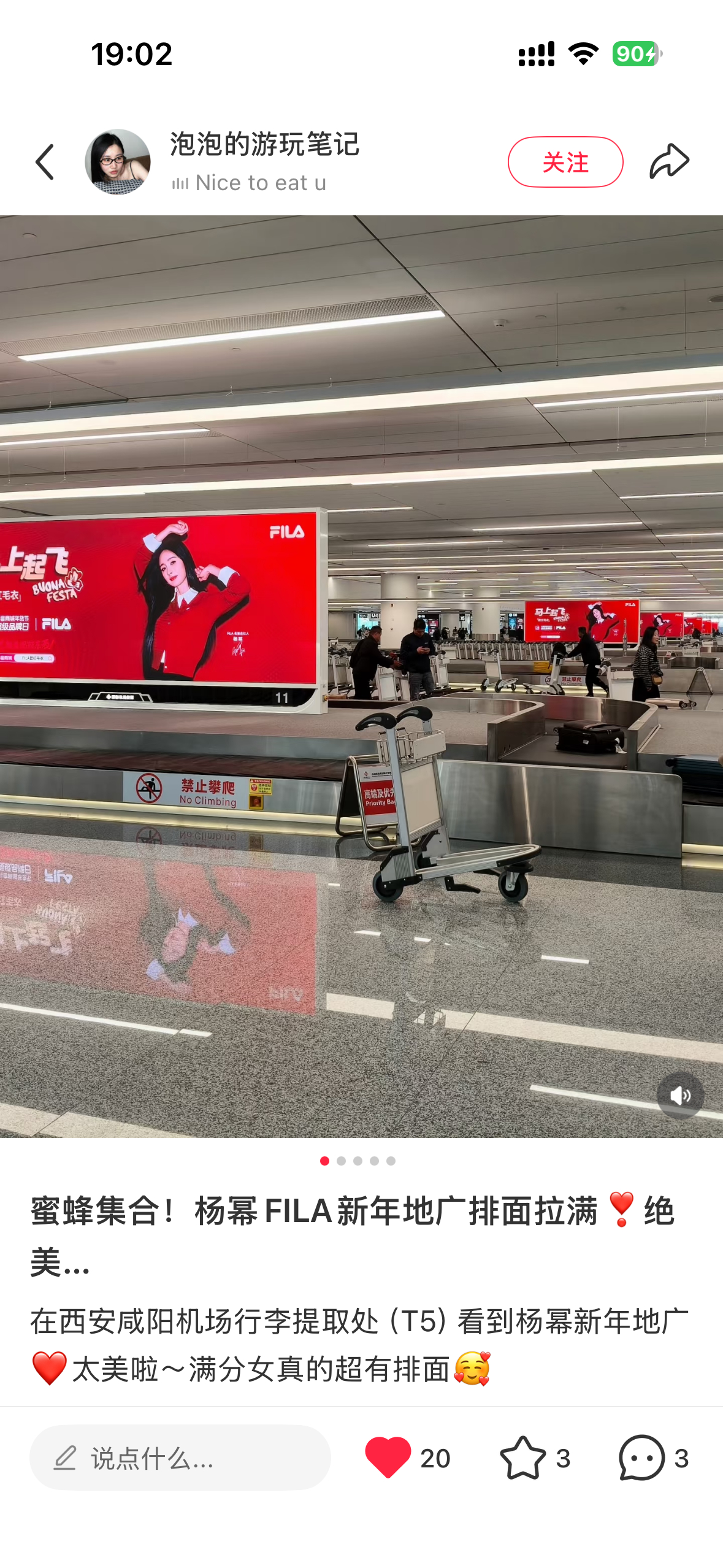 杨幂 最近出行西安咸阳机场的蜜蜂有福啦!好大好红的杨幂fila新年地广~
