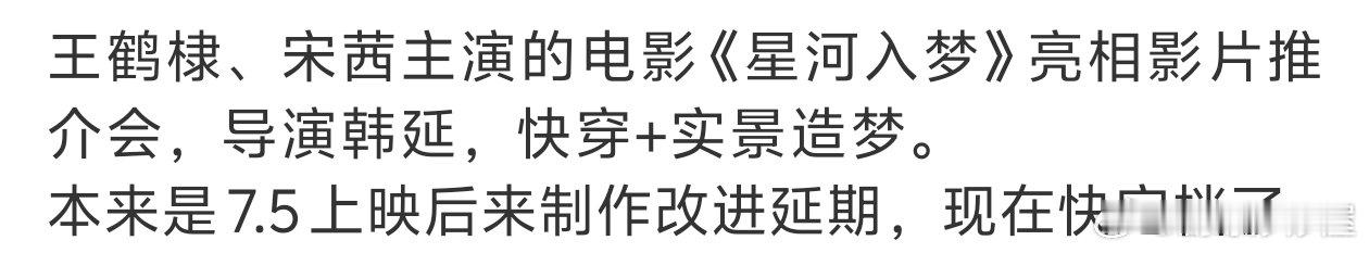 王鹤棣宋茜电影《星河入梦》或将春节档上映🎦!原定7.5,但由于后期特效制作量增