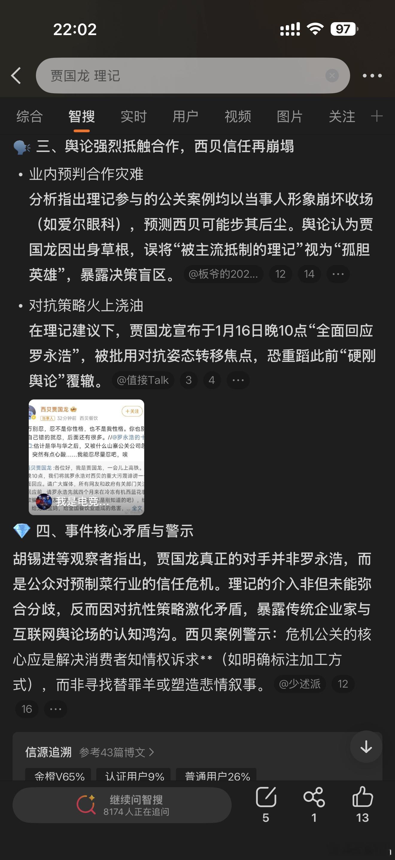 贾国龙 理记西贝回应 立平一边让大家控糖,一边支持西贝,这是什么神奇的操作。贾国龙的这次西贝操作,堪称一场典型的负面教科书级案例,问题出在认知、策略和执行的全链条上。既找错了“对手”,也找错了“盟友”胡锡进一针见血——贾国龙真正的对手不是罗永浩,而是公众对预制菜“高价≠品质”的信任危机。消费者质疑的是“21元的馒头、冷冻的有机西兰花”与“现做现卖”宣传不符的落差,而不是罗永浩的“污蔑”。在行业内已经被李想、雷军等人拉黑、被多家企业抵制的“理记”,本身就是一个舆论火药桶。贾国龙将其视为“孤胆英雄”,本质是把“被主流抵制”错当成了“敢说真话”,完全忽略了公众对这类争议自媒体的警惕,直接把“预制菜争议”升级成了“企业价值观争议”。在理记的建议下,选择“硬刚罗永浩”的对抗策略,试图转移焦点。但这种做法恰恰延续了西贝过去“硬刚舆论”的老路,只会让公众觉得企业在回避问题、推卸责任。同时贾老板反复渲染“员工来自贫困家庭”“现金流断裂、关店失业”,试图用道德绑架换取公众对高价的包容。但在消费者看来,这是用员工的困境掩盖企业经营和产品的核心问题,反而加剧了反感。主动曝光“连续125天现金流为负、亏损超5亿、关店102家”等核心机密,不仅引发供应商恐慌和消费者信任崩塌,更坐实了“经营不善”的负面印象,属于典型的“拔自己氧气管”行为。西贝这场危机的本质,是传统企业面对互联网舆论时的“认知休克”。当预制菜的信任危机爆发时,贾国龙没有选择直面消费者的知情权诉求,而是试图通过争议自媒体“曲线救国”,结果不仅没解决旧问题,反而引爆了新的信任炸弹。对所有企业来说,这都是一个深刻的警示:✅危机公关的本质是“解决问题”,不是“打赢嘴仗”。与其找替罪羊,不如直接回应消费者最关心的问题。✅盟友的声誉就是你的声誉。和争议人物绑定,等于主动把自己放在舆论的对立面。✅真诚永远是最好的公关。在信息透明的时代,任何试图掩盖或转移焦点的行为,最终都会被反噬。罗永浩 贾国龙