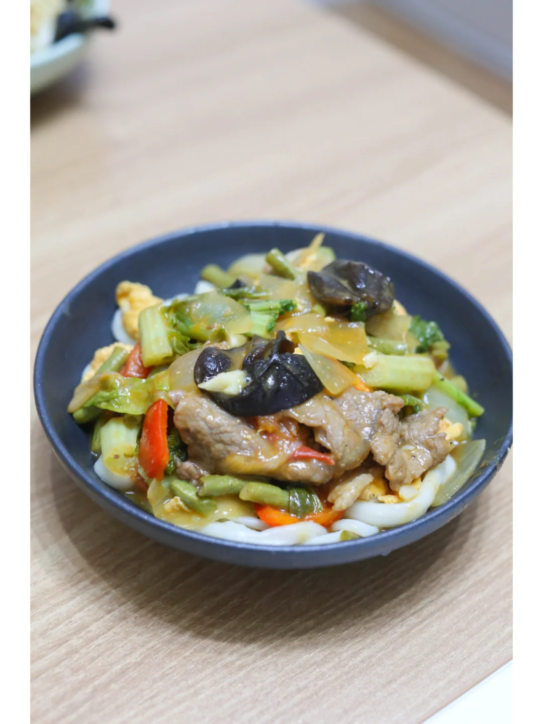 做了过油肉拌面,因为家里有小朋友做的是不辣版本的,整体看上去不是很正宗,但是味道特别好。