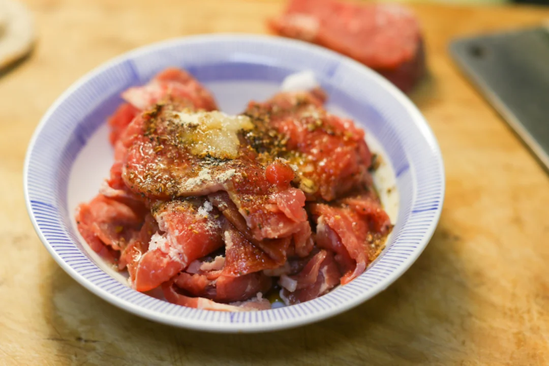 腌制牛肉: 食盐、生抽一点、 白胡椒粉、土豆淀粉、食用油。