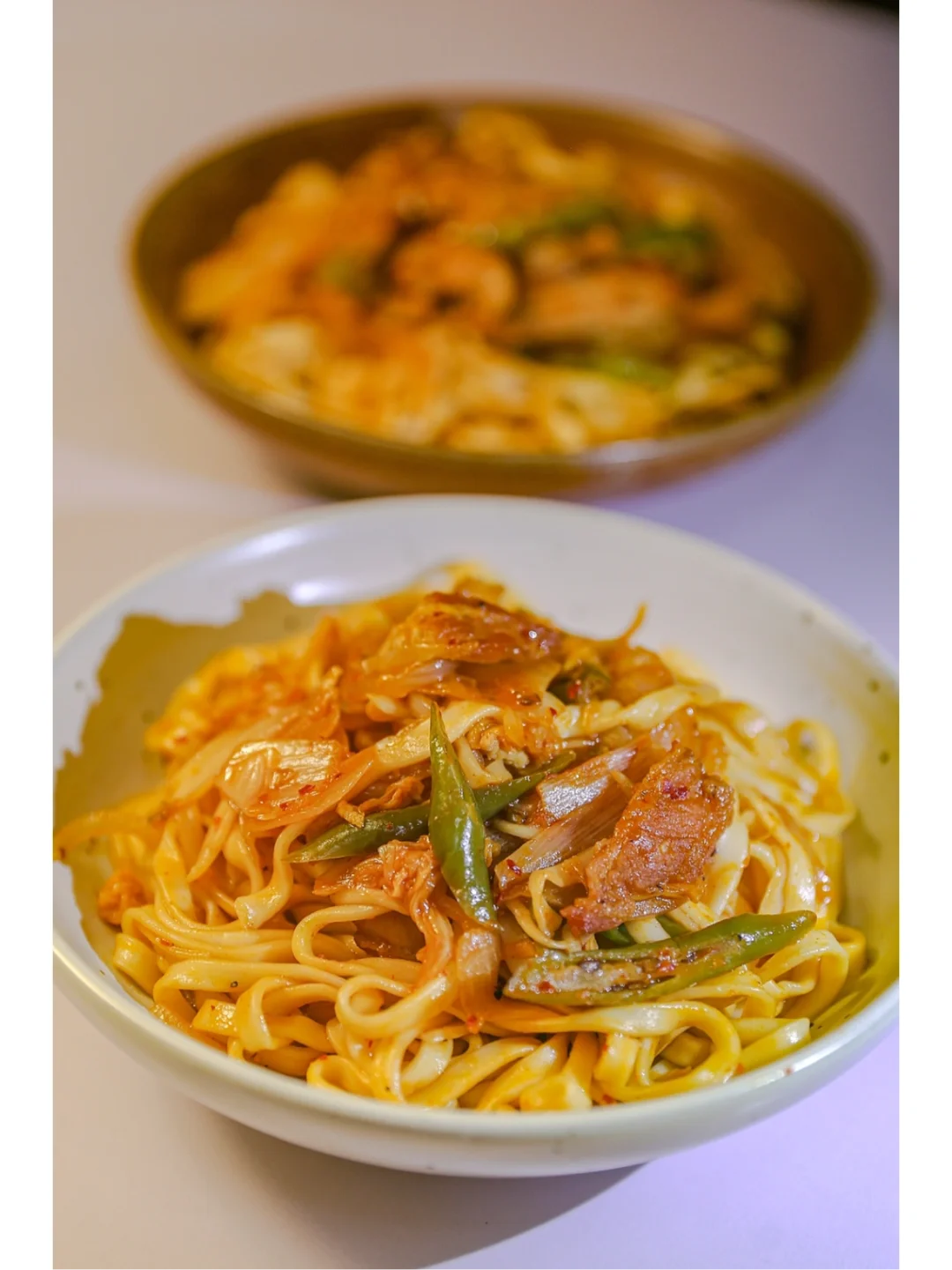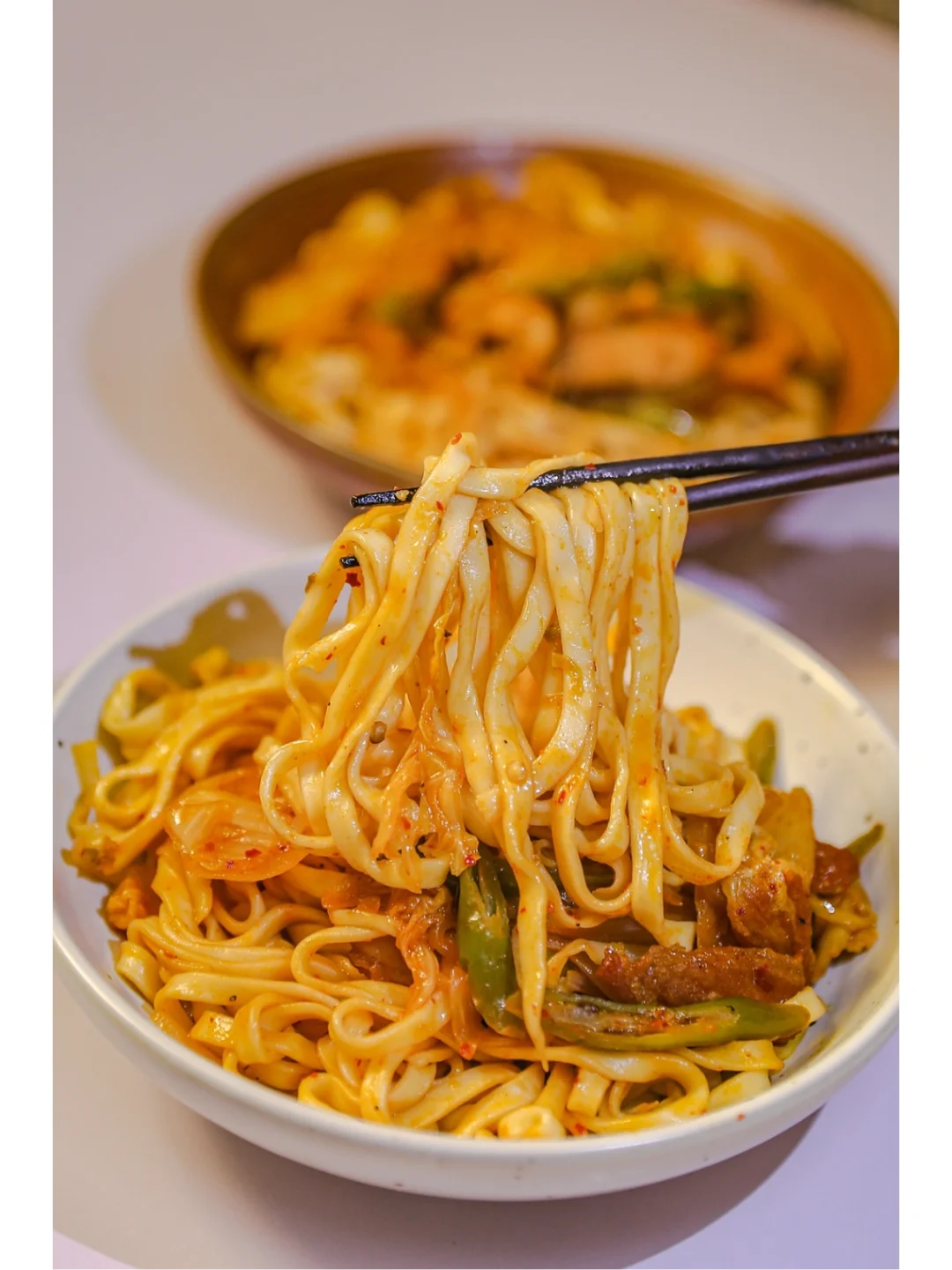 7.放入提前煮好的面,倒入炒面酱汁拌炒一下,既可以盛到盘子里了。