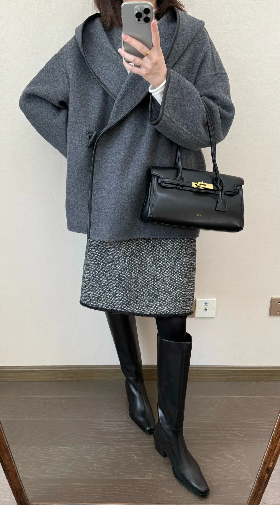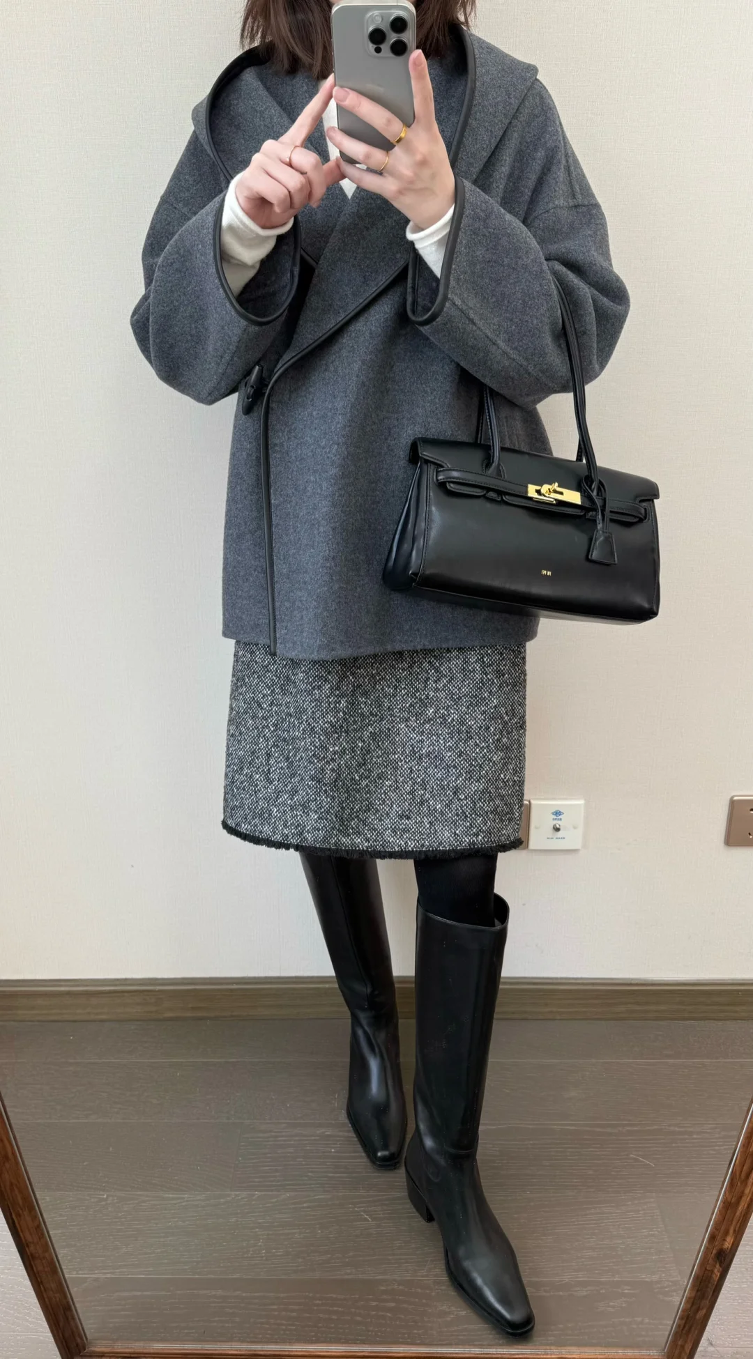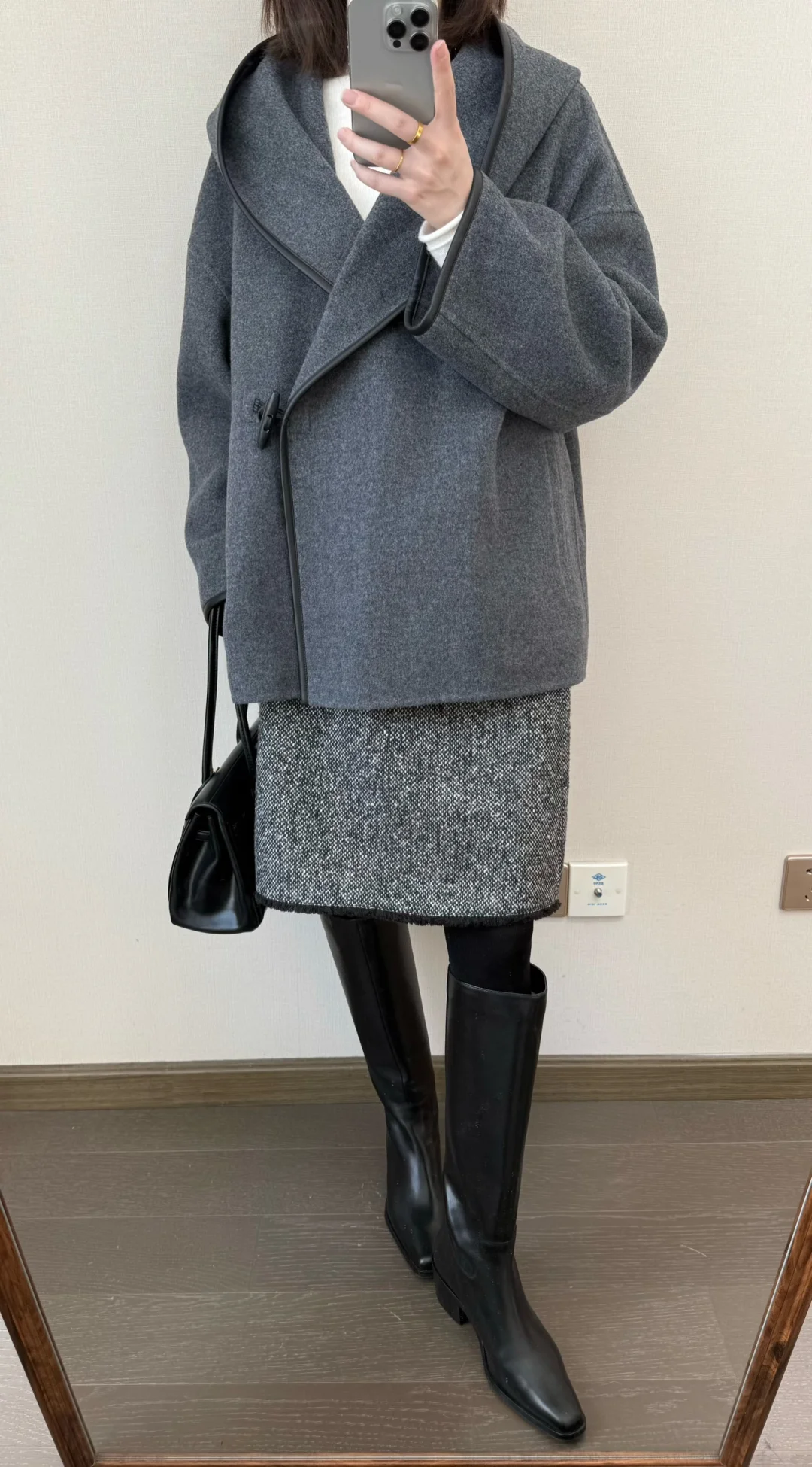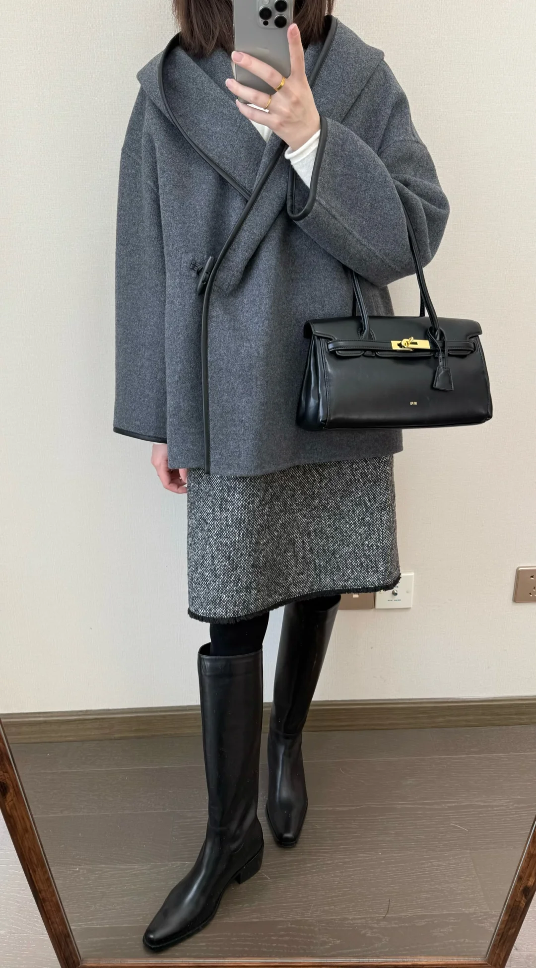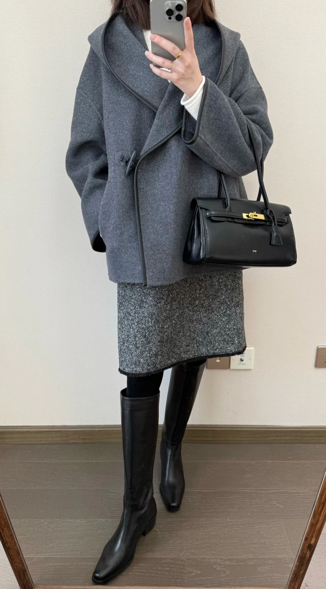 cleanfit简单出门 极简穿搭 通勤穿搭 灰色大衣 双面羊绒大衣 大衣风卷万物 优雅大衣范儿 大衣 灰色系 秋冬穿搭