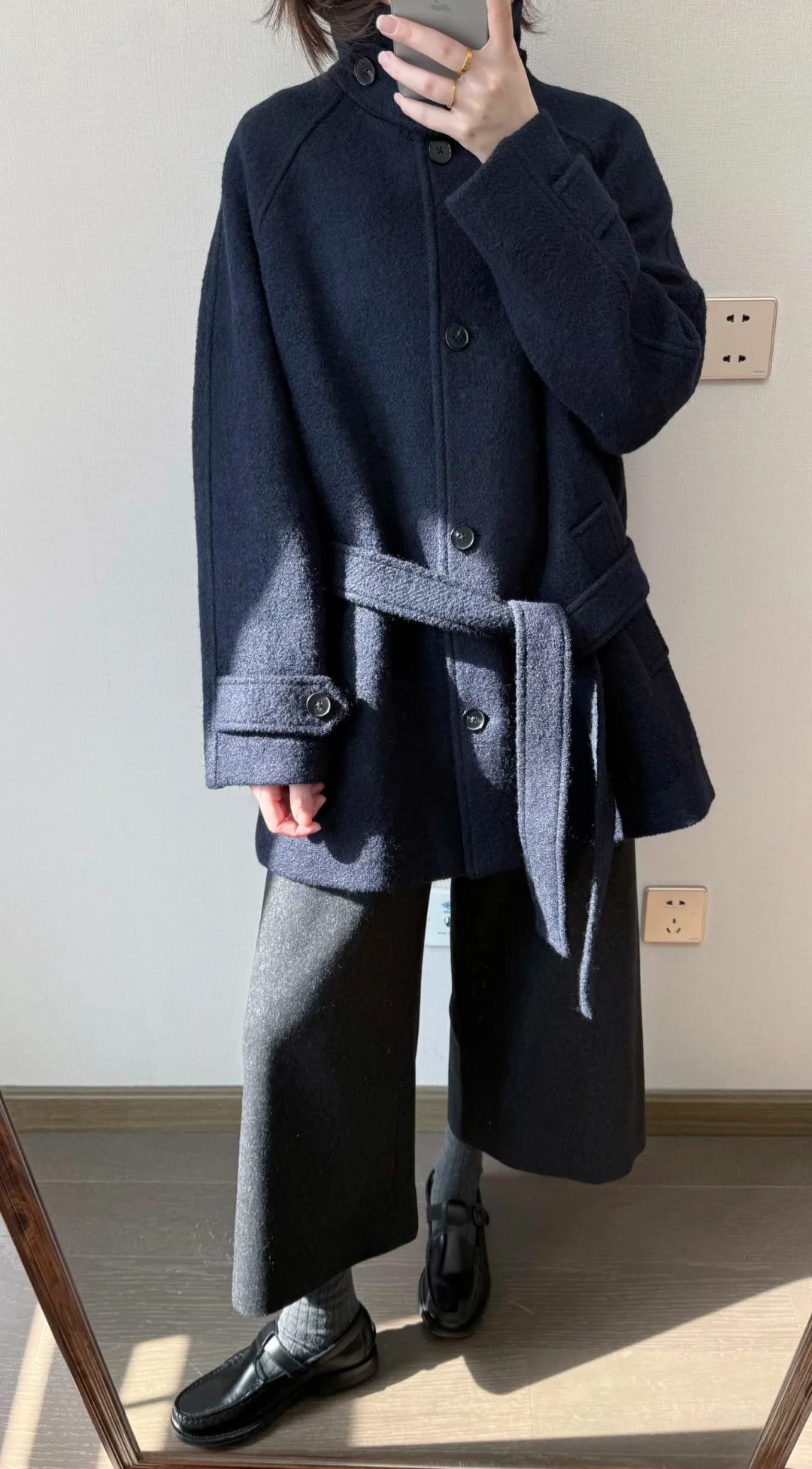一件质感很好的藏青色大衣
