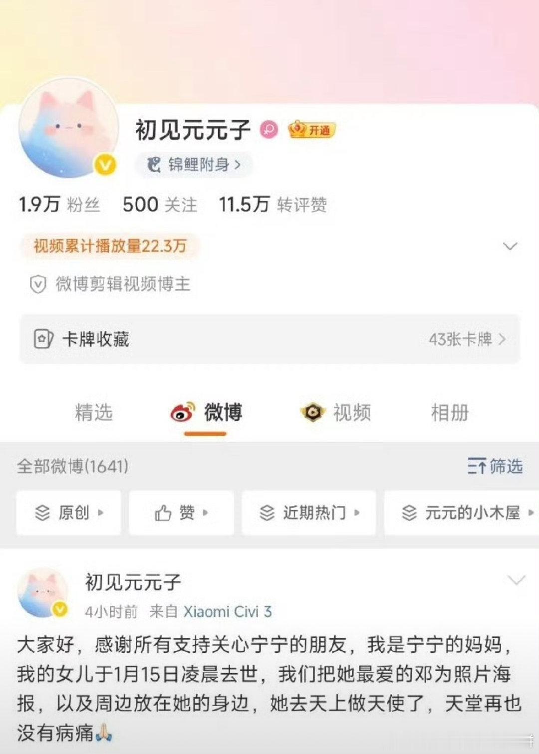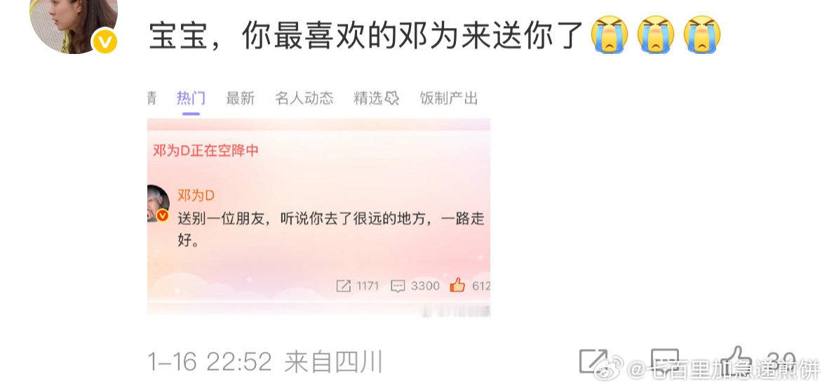 邓为深夜空降超话发博悼念因病去世的粉丝