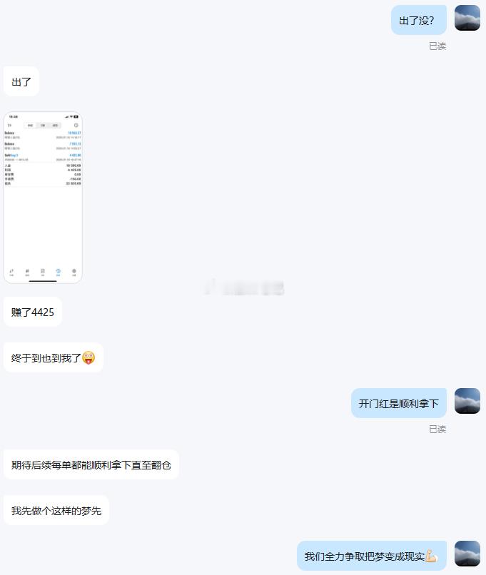 恭喜韩先生顺利拿下开门红恭喜韩先生开门红拿下4425美金!投资从来都是一场充满挑战的修行,既要抵御市场喧嚣的诱惑,更要保持内心的清醒与判断的敏锐。这条路上,没有一蹴而就的成功,所有收获都源于日复一日的沉淀与积累。量变终将酝酿质变,每一次研判、每一笔交易都容不得半点含糊,时间会给耐心者最丰厚的回报。黄金金价