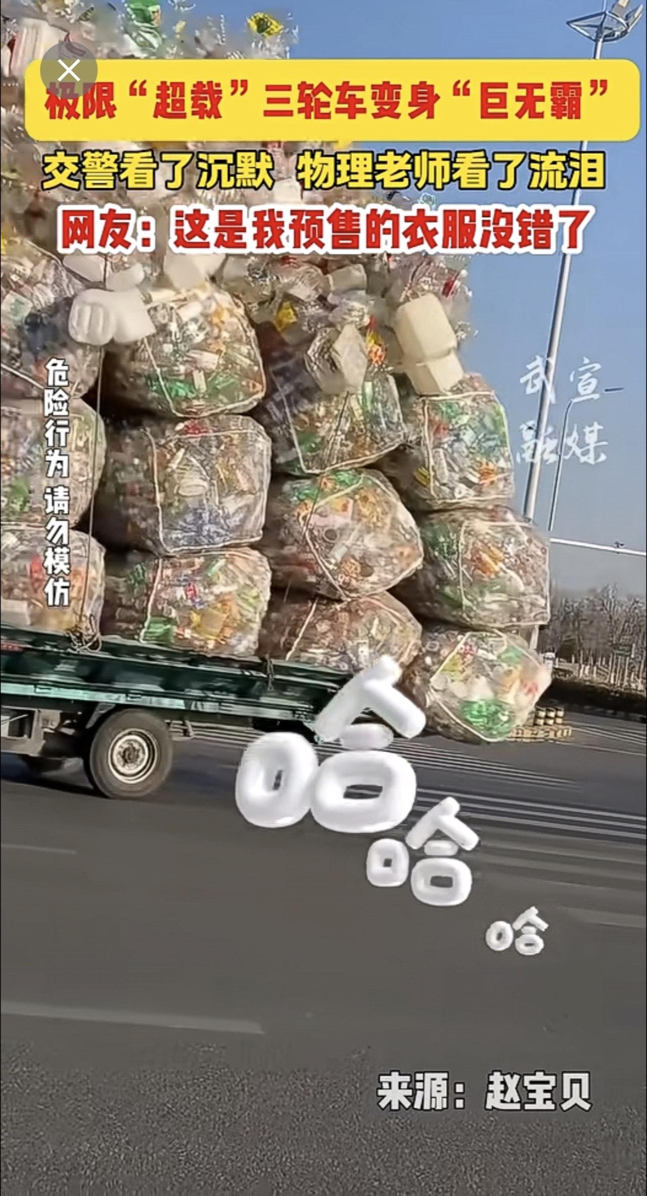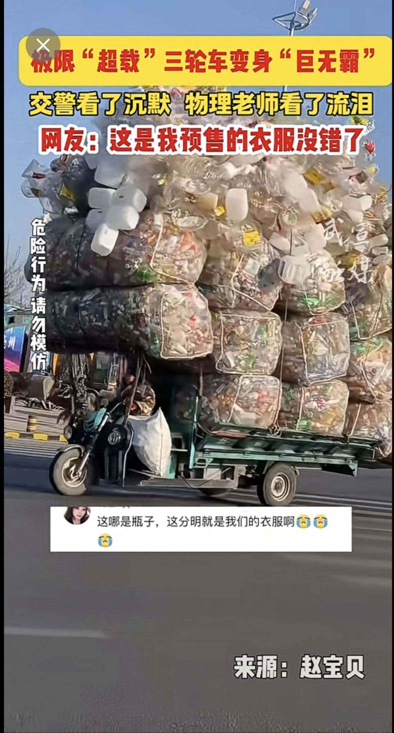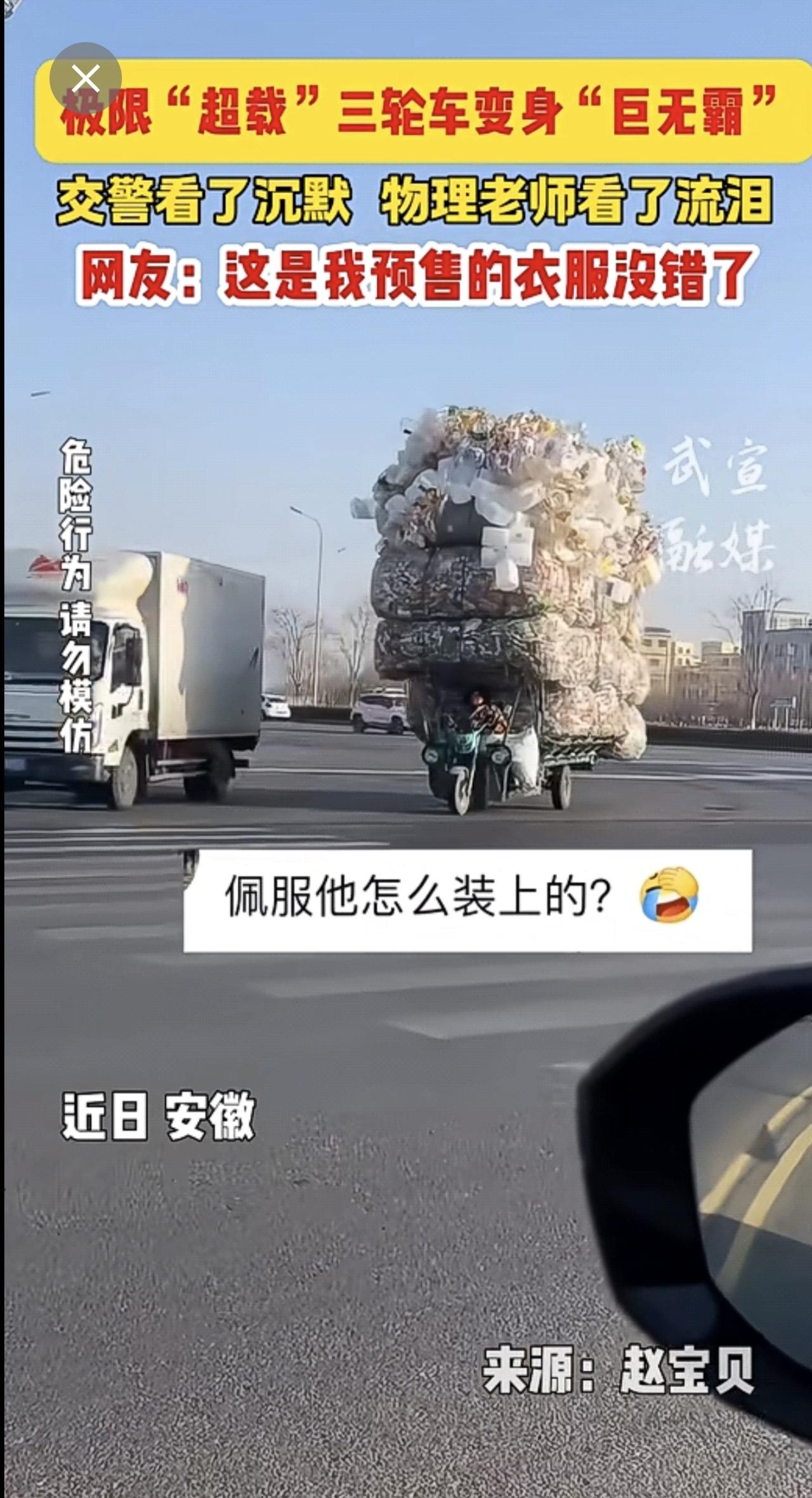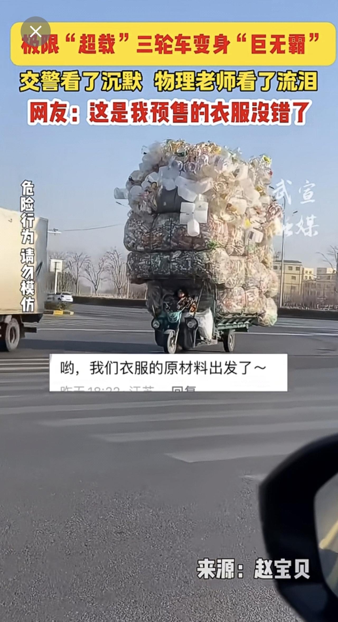 极限“超载”三轮车变身“巨无霸”,网友:这是我预售的衣服没错了!