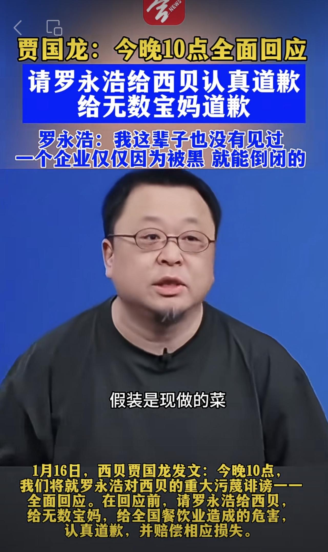 贾国龙:请罗永浩给西贝认真道歉!西贝 罗永浩 贾国龙 (来源:红星新闻)