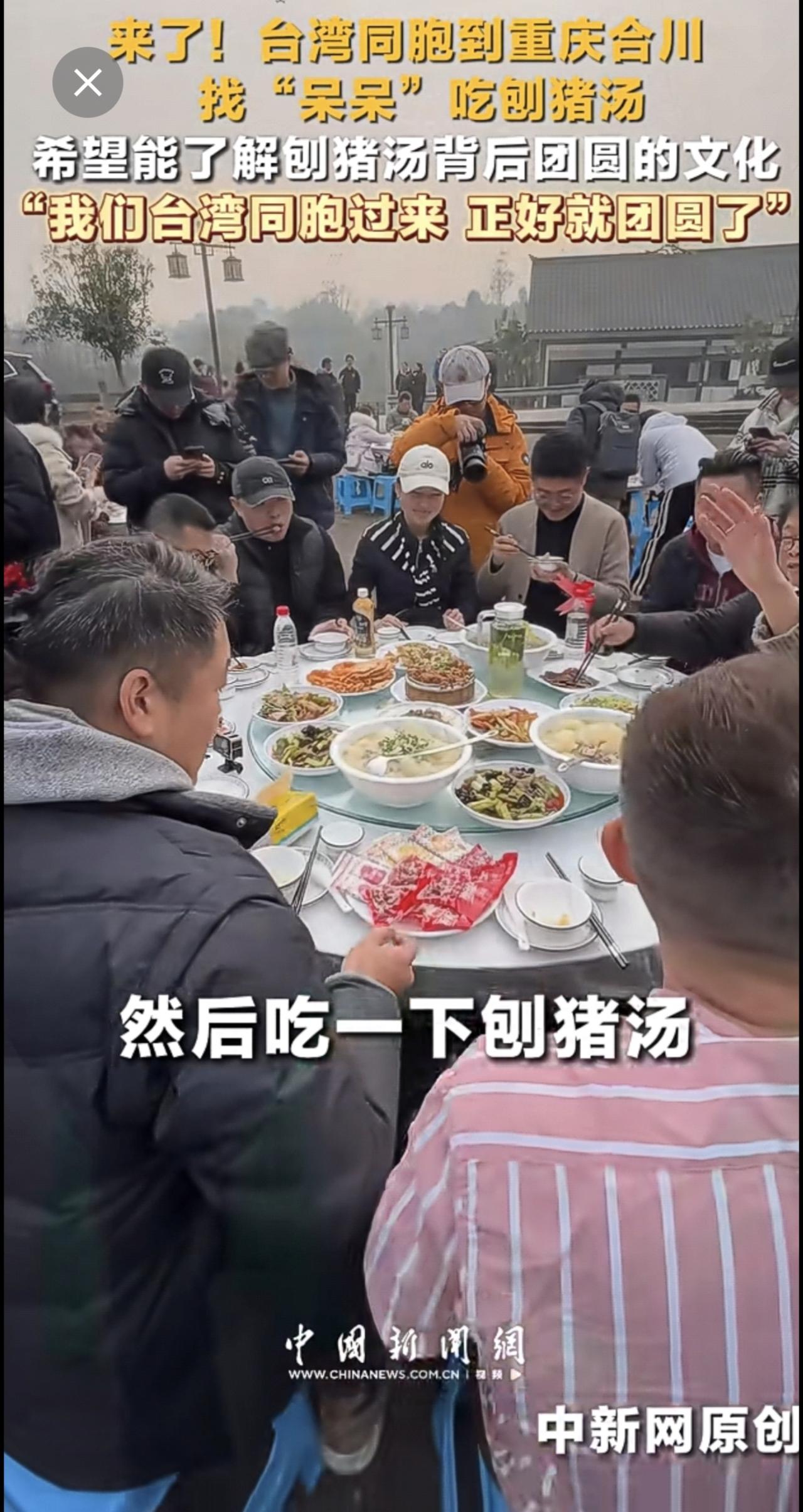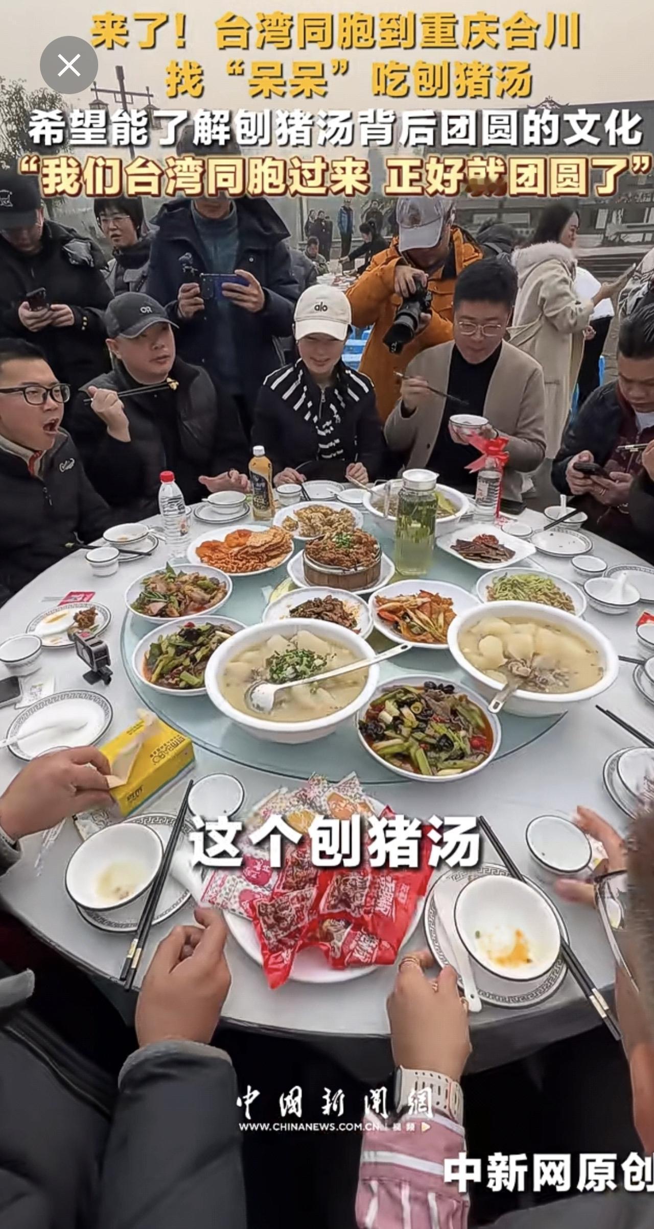 来了!台湾同胞到重庆合川找“呆呆”吃刨猪汤 希望能了解刨猪汤背后团圆的文化“我们台湾同胞过来 正好就团圆了”