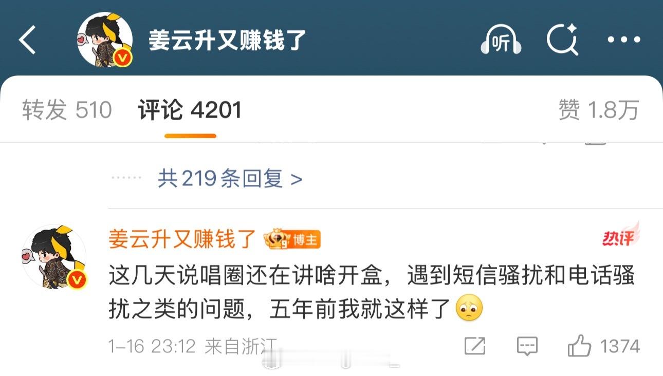 姜云升再次发文呼大家不要接机!同时还谈到开盒:“这几天说唱圈还在讲啥开盒,遇到短信骚扰和电话骚扰之类的问题,五年前我就这样了”姜云升