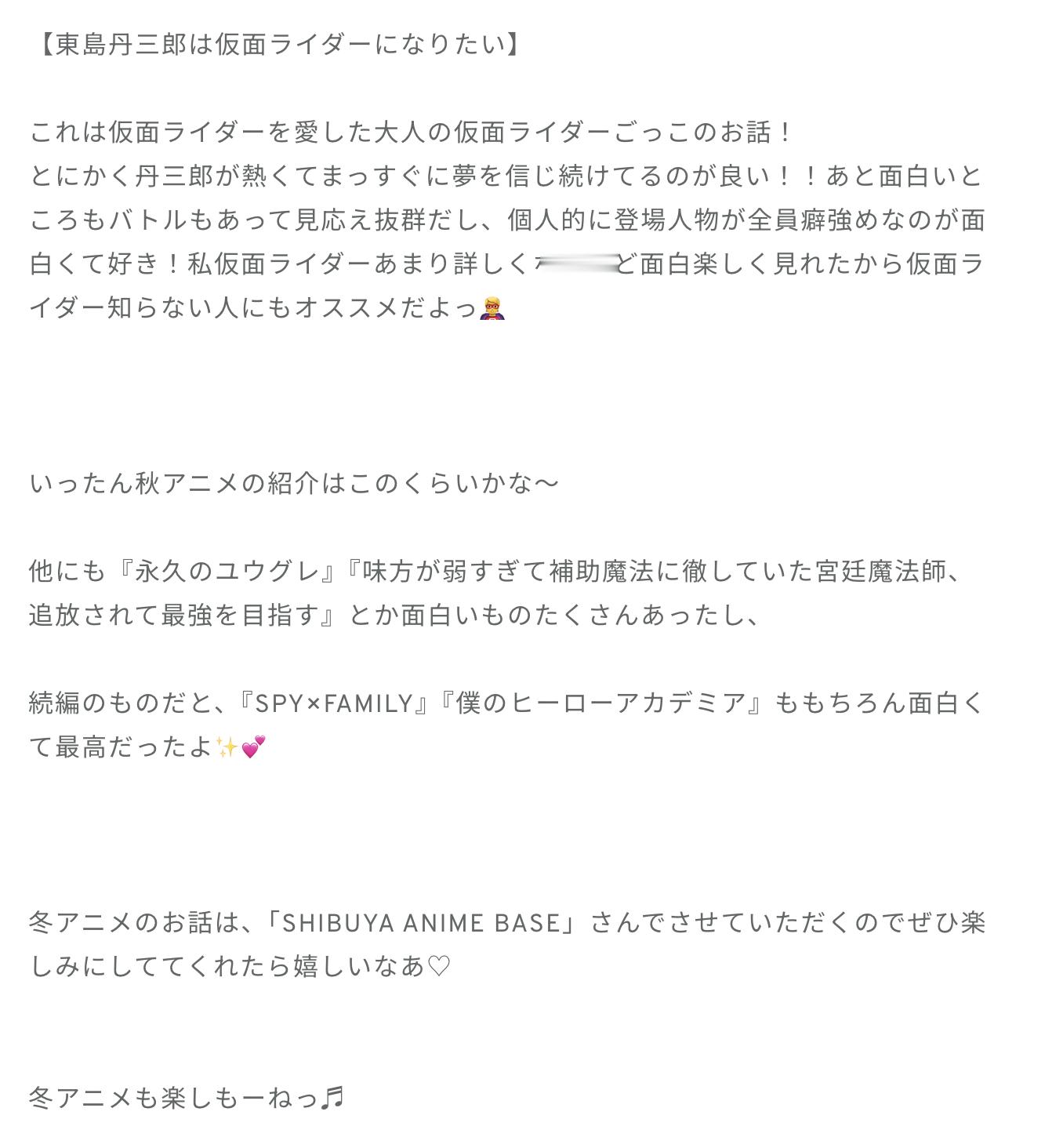 大田美月「最近冬アニメが続々と始まっていて、今期何を見るか悩んでいる日々なのですが!冬アニメが始まったということは、、、秋アニメが終わったということ!!!なので今日は個人的にオススメしたい秋アニメ3つを紹介しちゃおうと思います!(ずーっとするねするねって言いながらできていなかったので…!)今からでも追いつけるように、夏アニメを紹介した時と同じく、秋アニメで1期から始まったものを3つ紹介するねっ💕︎」