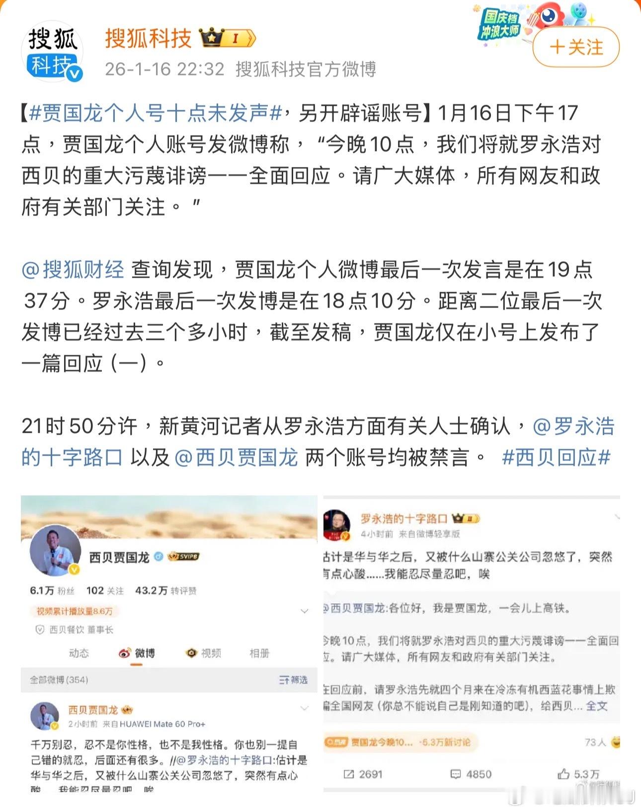 来总这是真怕打起来,已经对贾国龙和罗永浩账号进行预防性禁言,怪不得十点没到贾总就另辟战场先出招了。