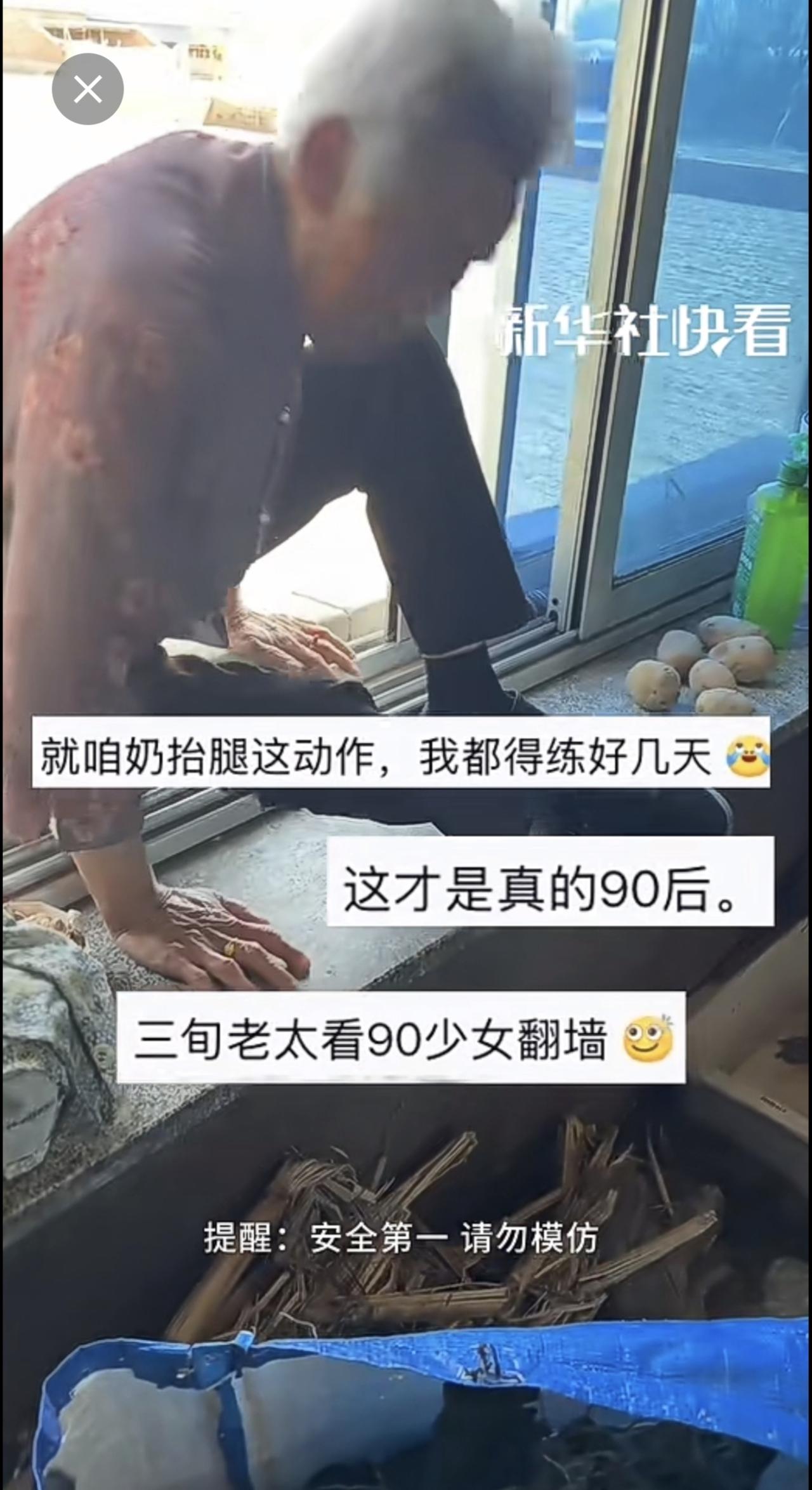 90岁奶奶回家不走寻常路,爬墙又翻窗,动作干脆利落。网友:这是90岁还是“90后”?(来源:🥕胡萝卜糊了 )