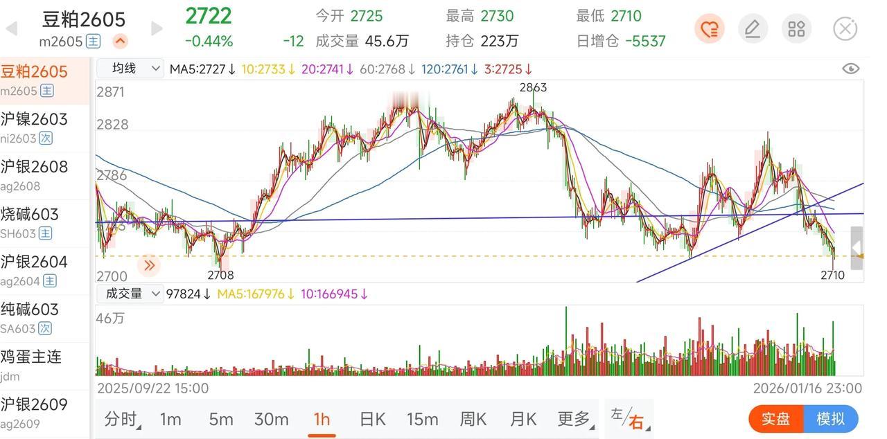 都是老套路,拉不上去就向下打高度,直到到达别人心理价位,然后联合别人一起把价格打上去。玩期货不要想着关键支撑位一定不会破,应了那句老话:一切皆有可能。 所有技术指标只是参考,主要还是看资金是否愿意,甚至一个大单,就能扭转局势。什么是趋势?高低点不断上移是向上趋势,大区间趋势包含小区间趋势,选择自己适合的区间玩最重要。