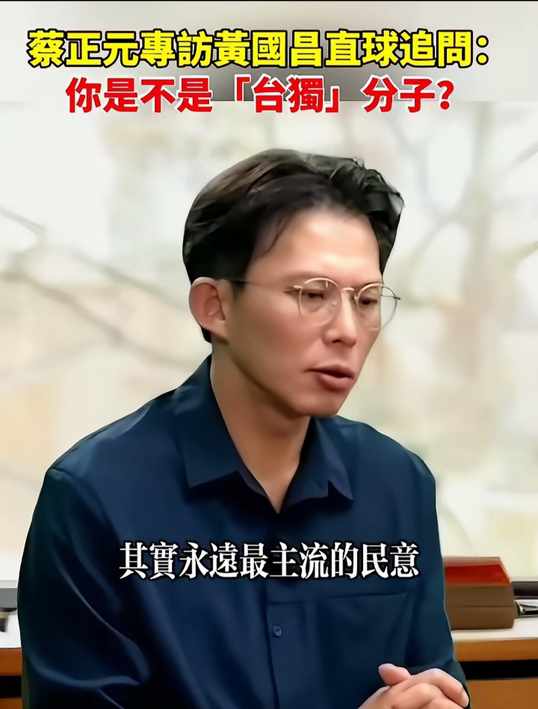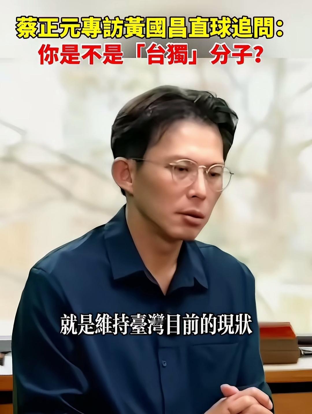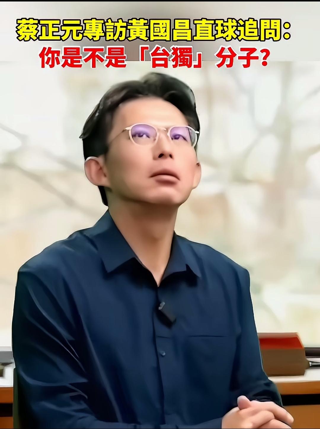 蔡正元当面提问黄国昌是不是台独分子,黄国昌直接懵了! 1月15日,蔡正元请来台湾民众党主席黄国昌做访谈,期间,蔡正元突然提出一个犀利的问题,他问:你觉得你是不是台独分子? 面对这么直白的提问,黄国昌直接懵了,仰天思考了十秒钟,才进行回答,然而黄国昌没有回答是与不是,而是说了一堆顾左右而言他的话,不敢正视这个问题,让蔡正元没有得到满意的答案。 黄国昌是这么说的:“我从年轻到现在,针对有关于两岸关系的描述,我大概听过十几种理论,一国两制、一国两府、大中华,反正各式各样的理论。我2020年离开立法院以后,其实想了很多事情,其中一个是花那么多的时间跟精力在争执这件事情,争执了二三十年。最后到底成就了什么?没有成就什么。因为这二三十年,其实永远最主流的民意就是维持台湾目前的现状。” 黄国昌接着说:“我更关心的事情是什么?我更关心的事情是台湾的年轻人敢不敢成家?他要上战场敢不敢生小孩?他去打仗,为台湾光荣而战死,养不养得起自己?不需要养,如果要打仗养什么?必须要先面对。我们的人民、年轻人现在的生活到底是什么?以台湾现在的状况继续走下去,生育率是全世界最低。是的,你继续这样下去根本不用打,自己就把自己给玩完了。”“两岸之间需要善意沟通、对话,这是避免擦枪走火的关键,美国也认同两岸沟通的重要性。” 从黄国昌的发言可以看出,他虽然不像赖清德那样搞台独,但是,他也绝非统派,他应该算是一个台派,他的路线就是:我可以跟大陆沟通交流,跟大陆友好,目的是不要冲突,不要打仗,然后把当前的现状永远维持下去。 大家说,这个路线行得通吗?