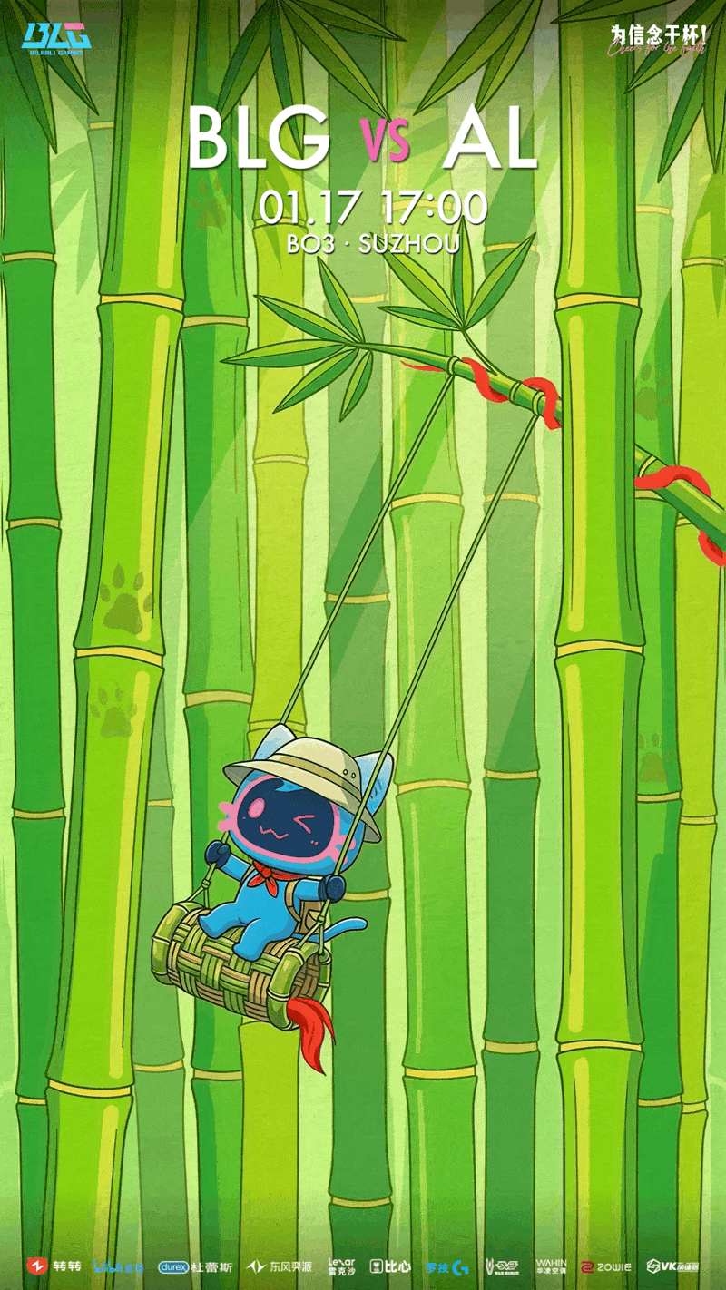 虎扑01月17日讯AL对战BLG的比赛将于今日17:00进行,赛前双方发布海报预热: