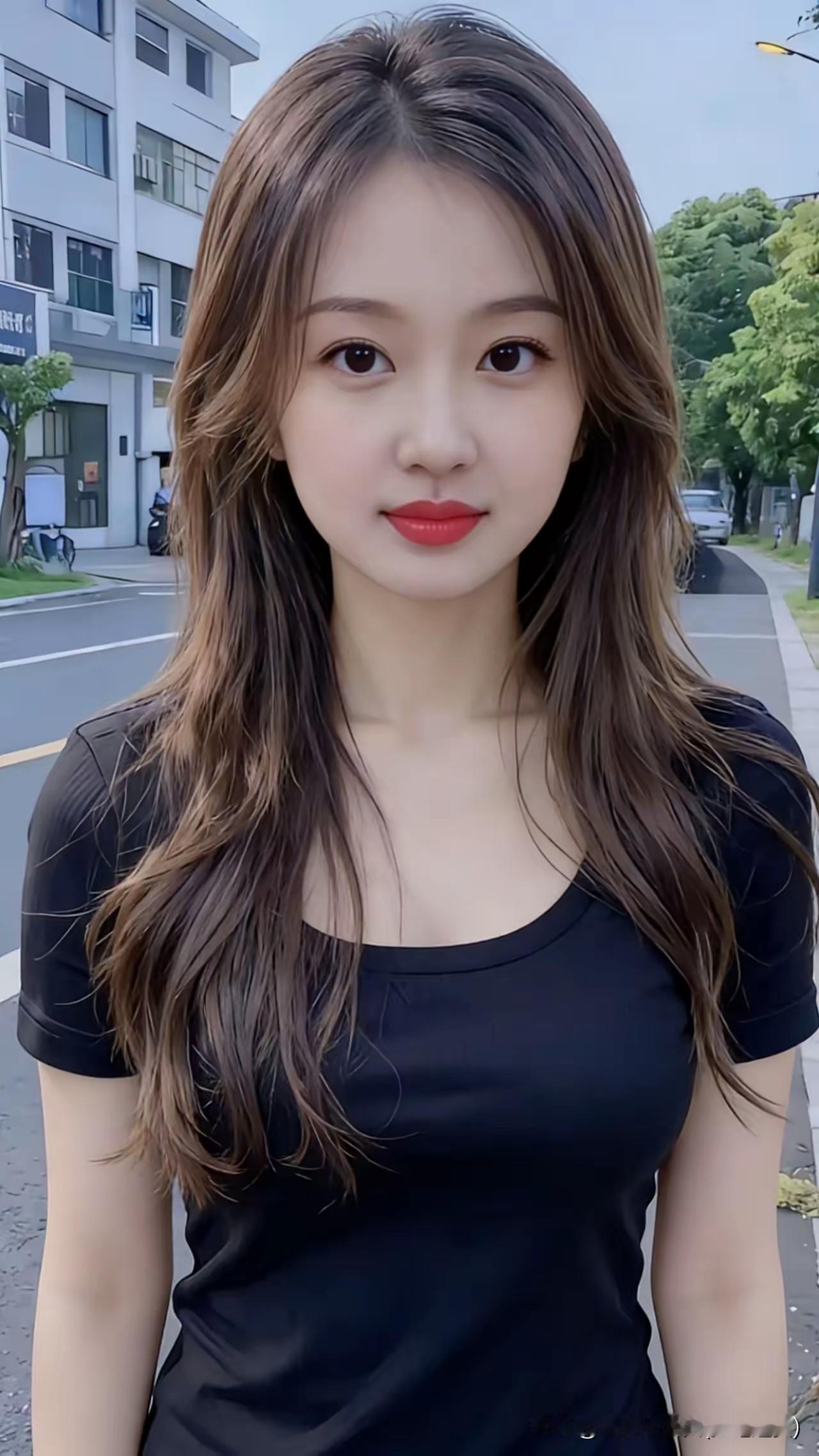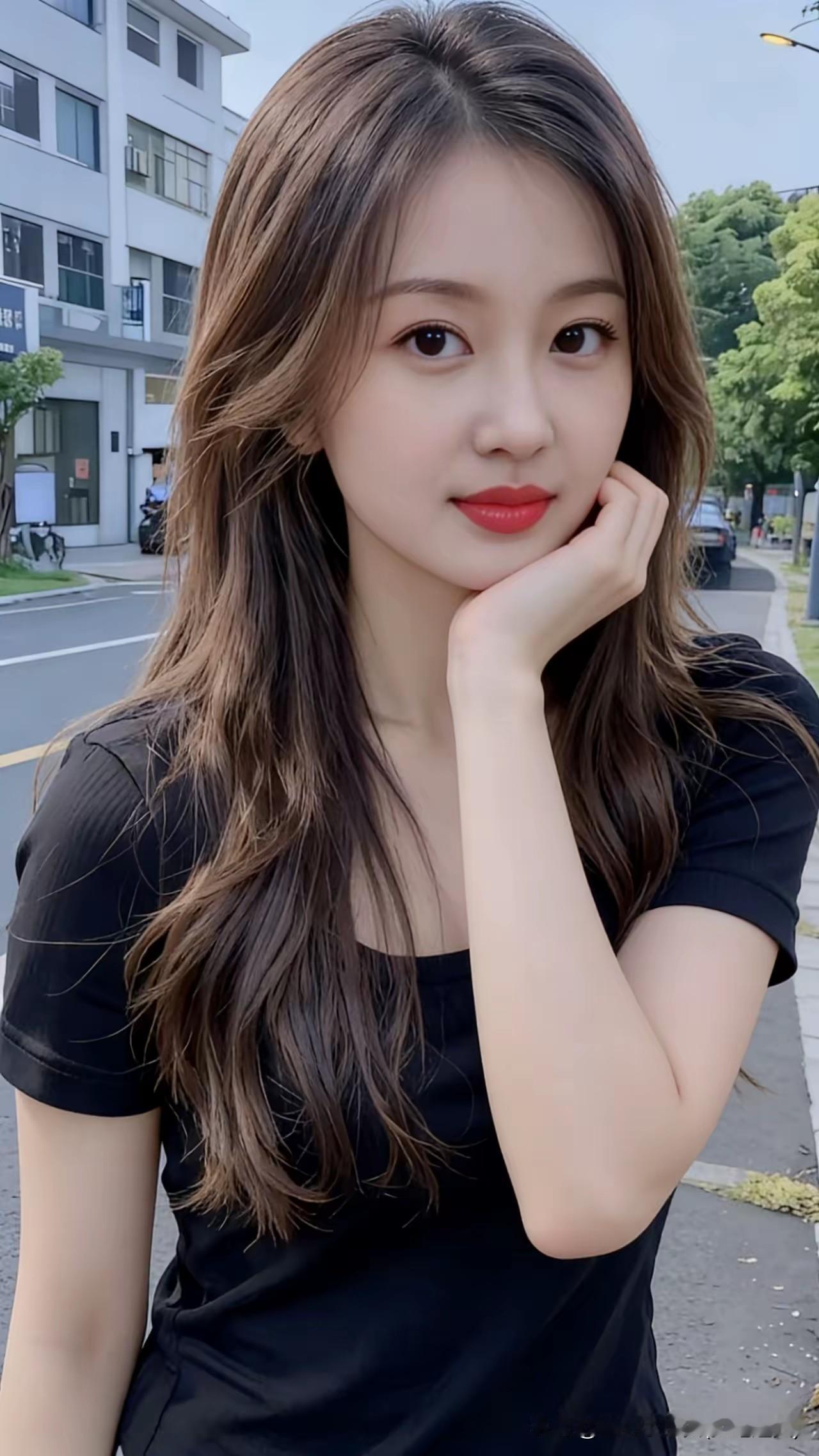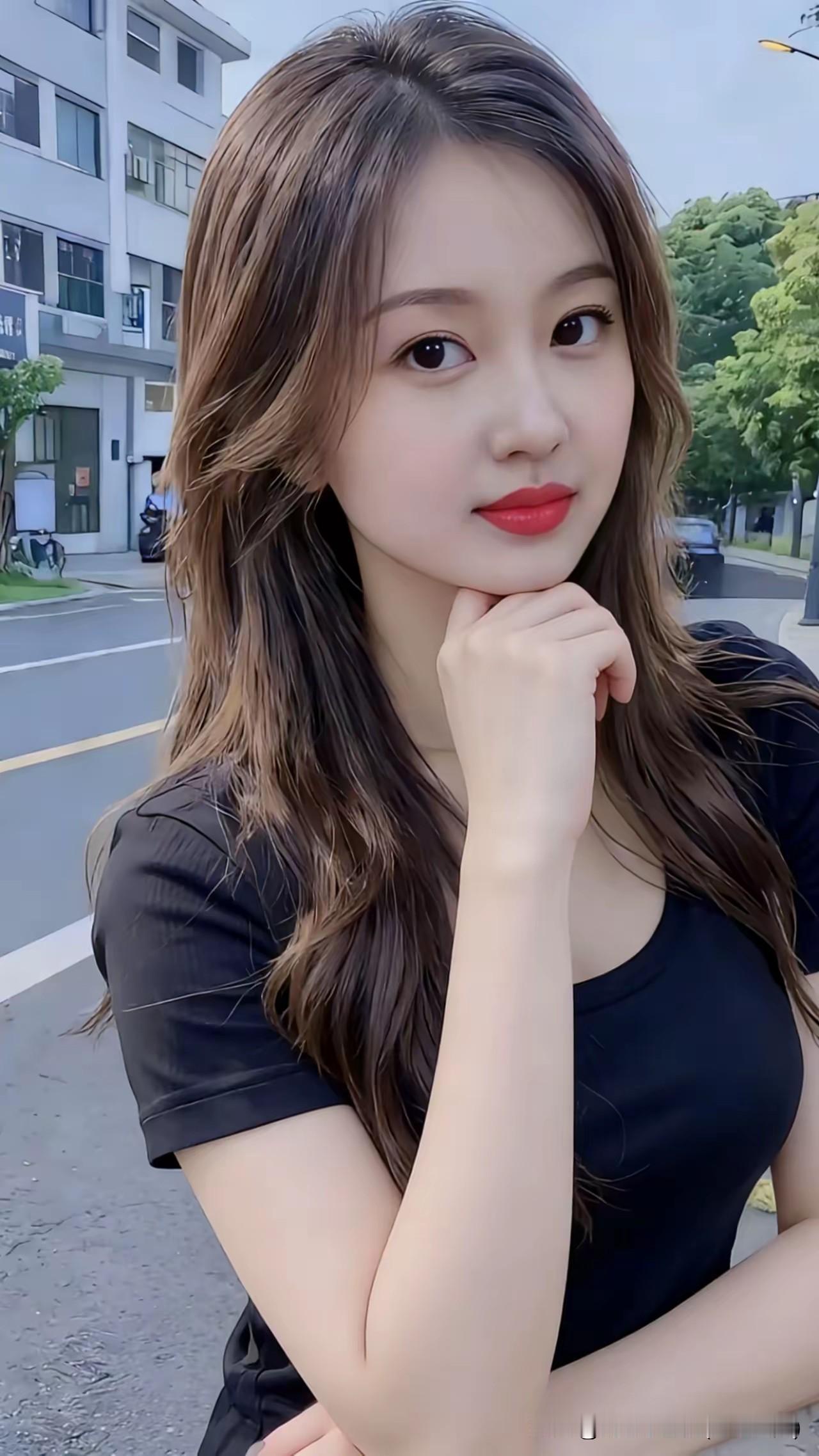 这是校园小妹妹还是大学女教师?一身黑系穿搭太精致了,浓眉大眼+烈焰红唇+波浪卷,