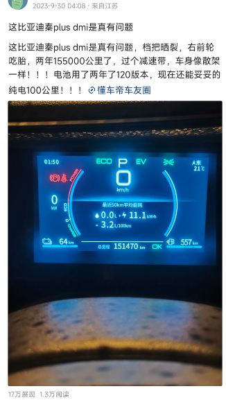 比亚迪:“以后谁再说电车电池寿命不行,我就把这图甩他脸上!”大家还记得那个破了
